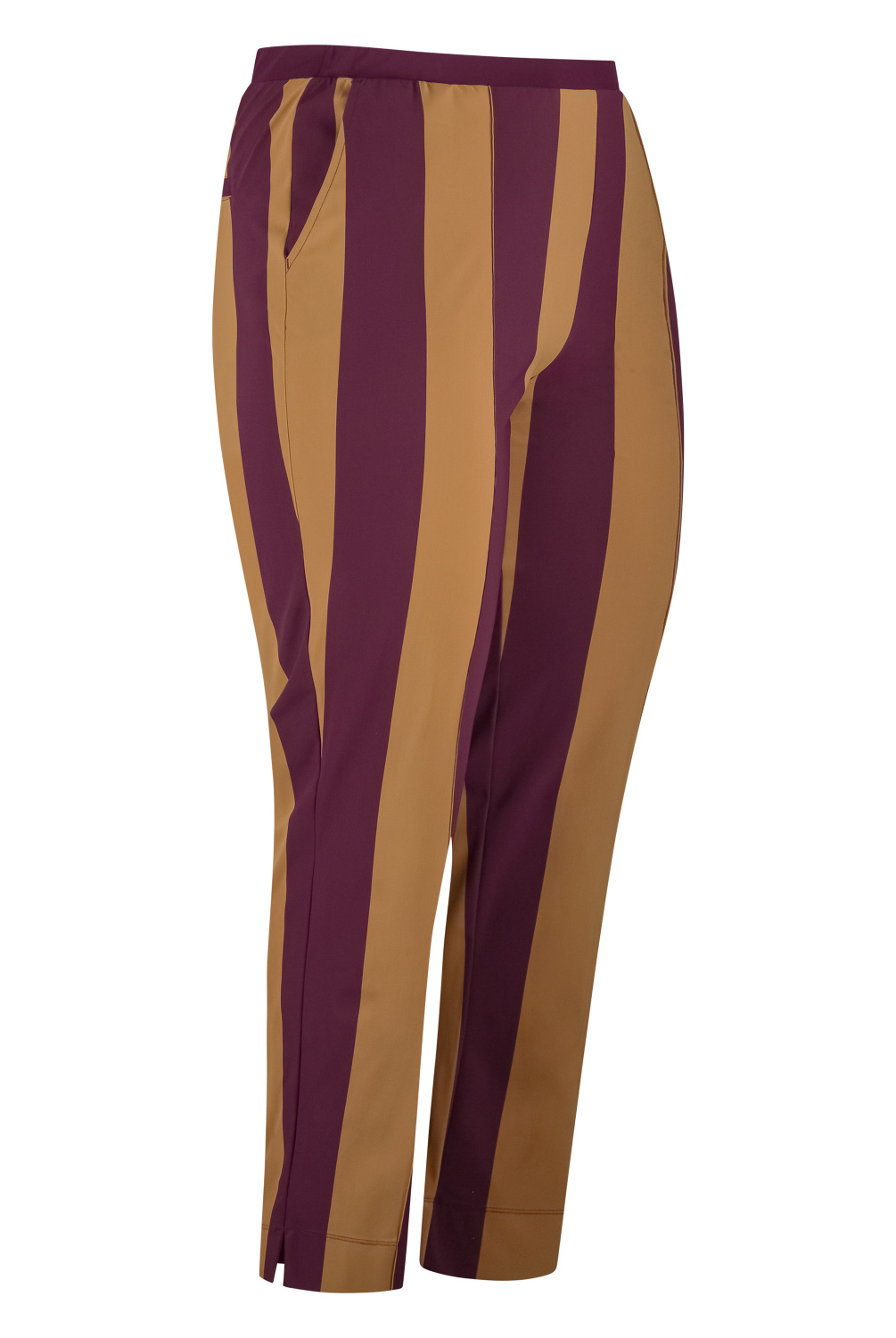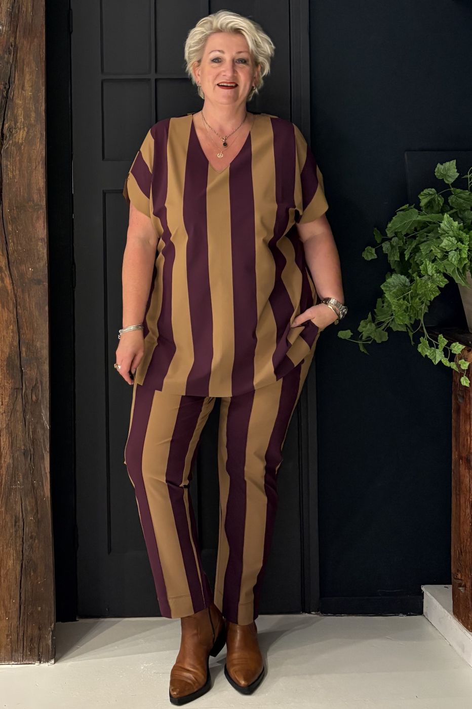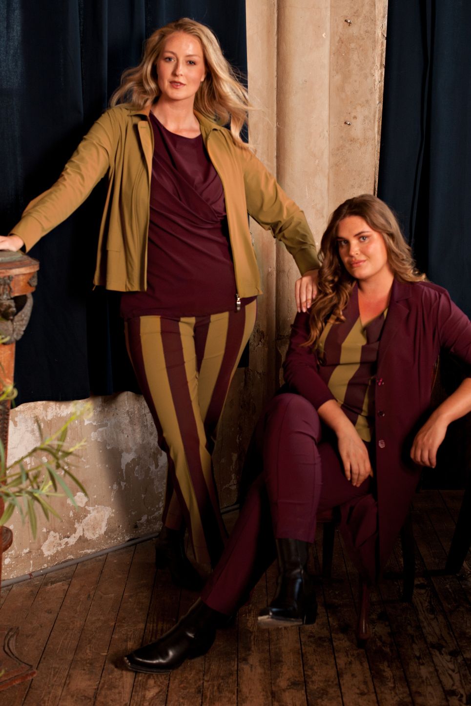 Rechte city broek met twee steekzakken voor en twee fake strookzakken achter. Ingestikte naad op been voor. Split onderaan op pijp.