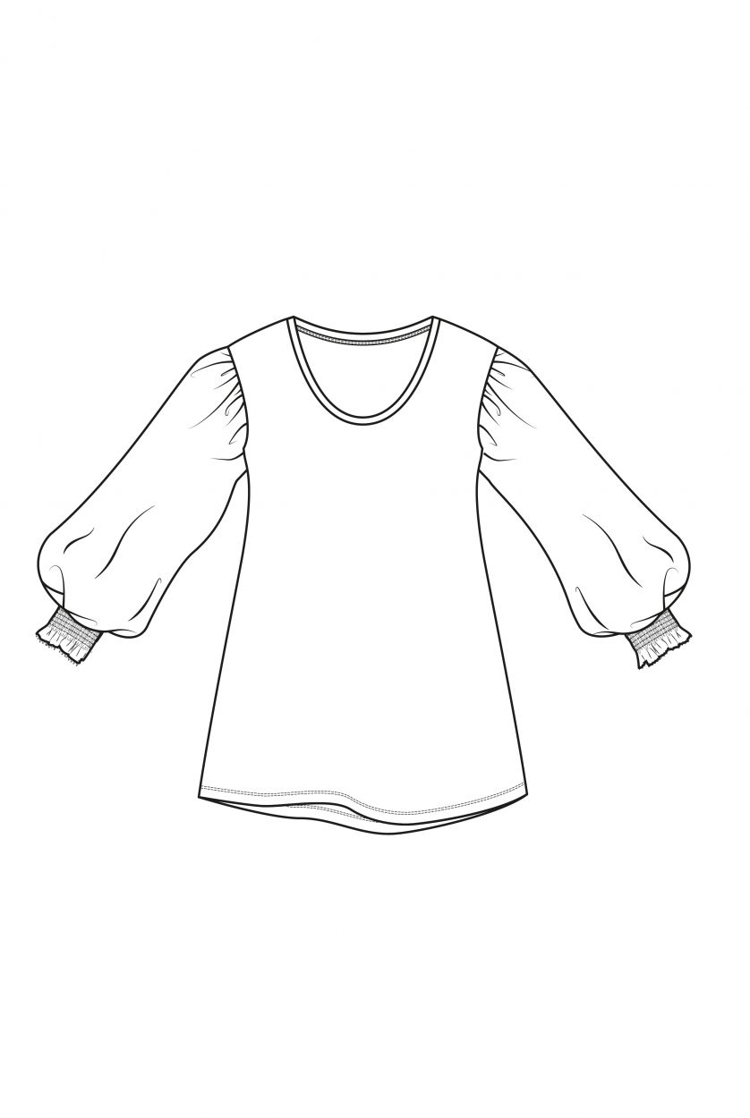 Top met een ronde halslijn, lange poffende mouwen, met brede platte plooien bij de schouder en gesmockte elastische manchetten.