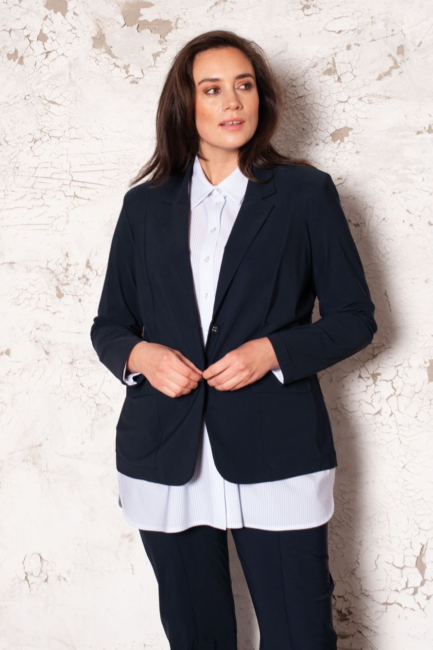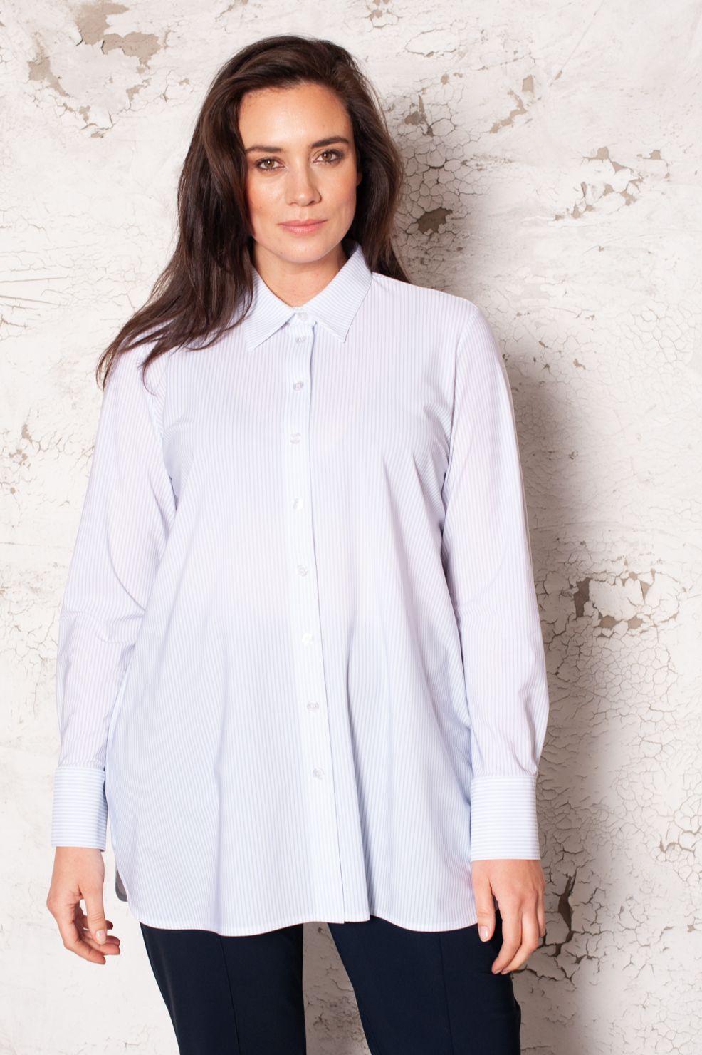 Shirt Basic met lange mouwen met lange manchet met vier knoopjes, afgeronde zoom met split.