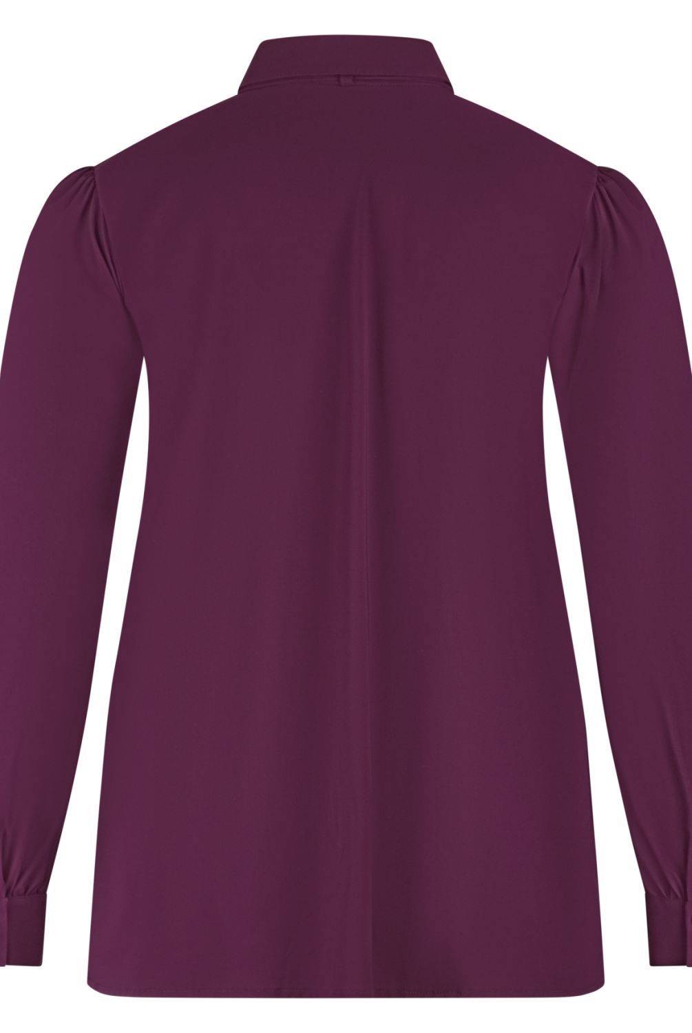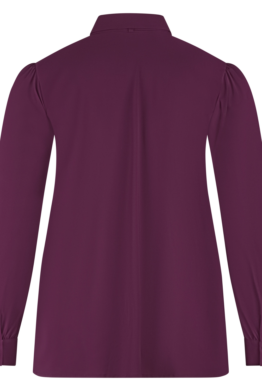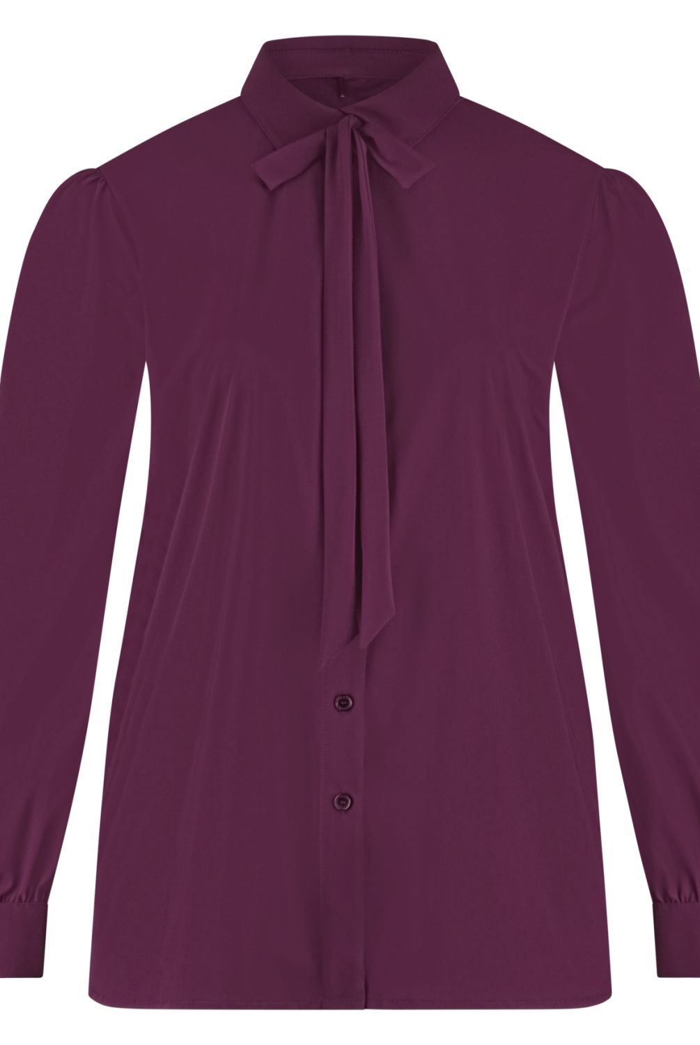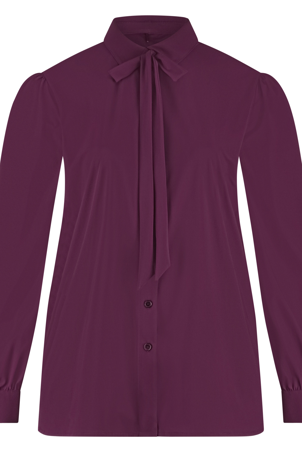 Shirt Puffed met lange ietwat poffende mouwen met kleine plooitjes op de schouderaanzet. Manchet met twee knoopjes. Afneembare strik, afgeronde zoom met split.