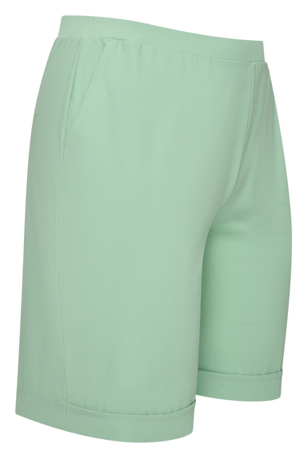 Short met omslag aan de broekspijp, steekzakken van voor en paspelzakken aan de achterzijde.