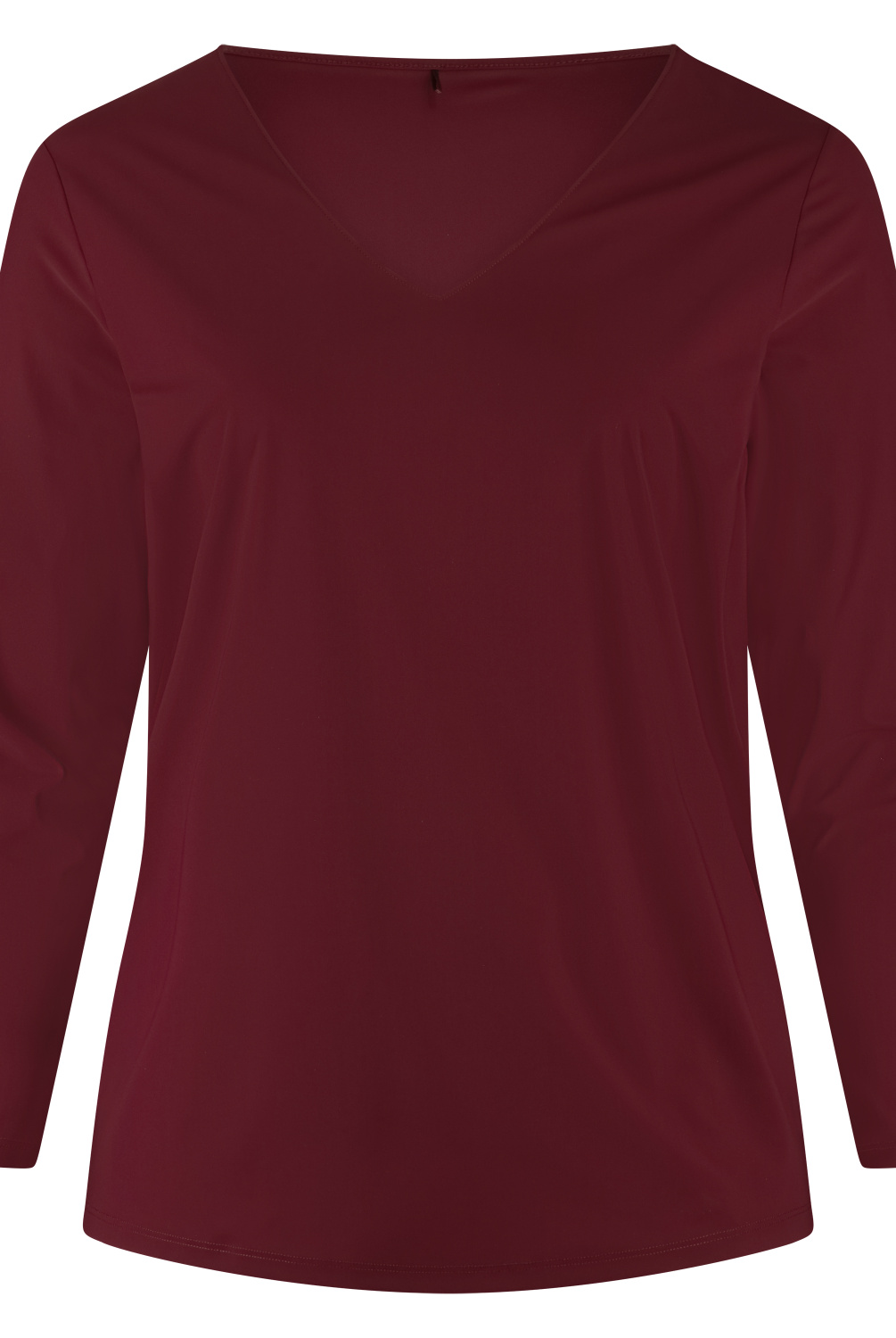 Top met V-hals en een lange aansluitende mouw. Slankere en kortere fit. Lengte 78 cm (mt 46)