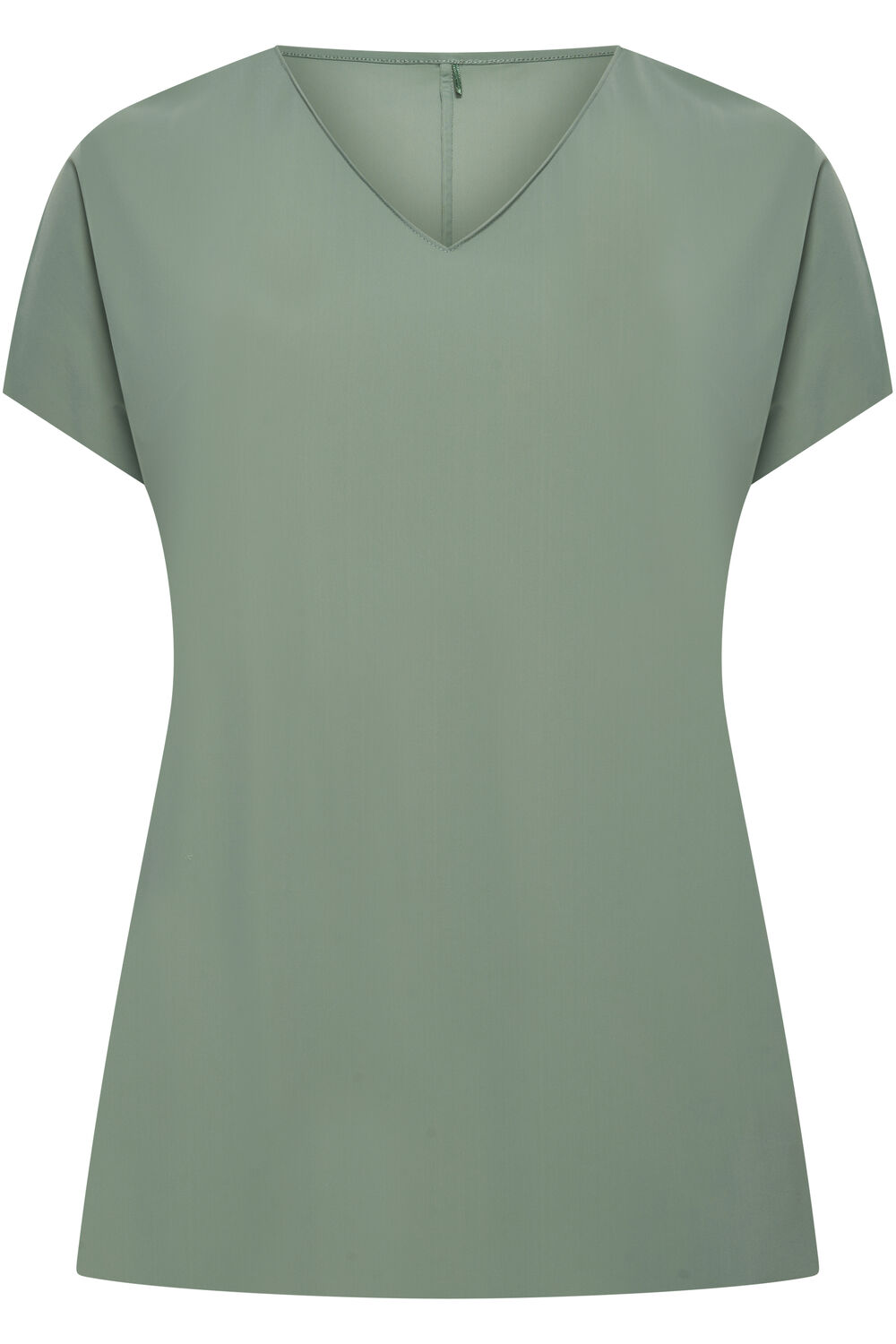 Soepelvallende, A-lijn top met V hals en kortere aangeknipte mouw met splitje. In Travel Light. Musthave voor de zomerse dagen!