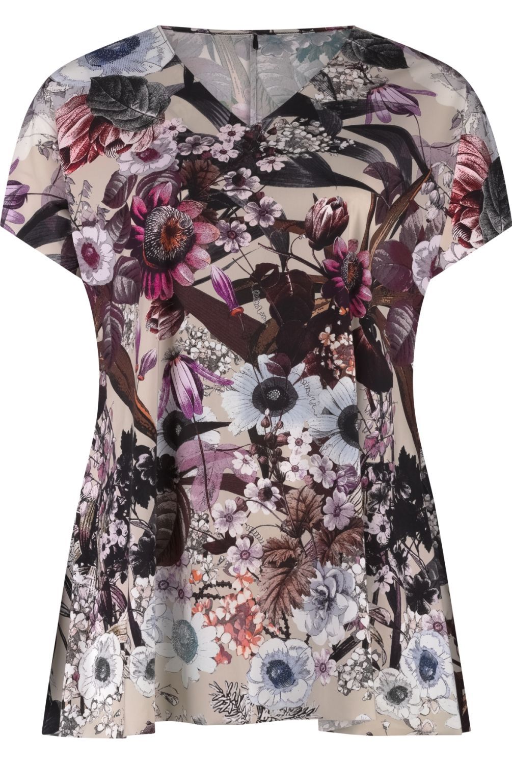 Mooie Top in super comfy Travel Light. V-Hals met beleg, mouwtje met split (raw cut) en uitlopend model (raw cut onderkant). Heerlijk te dragen met warm weer!