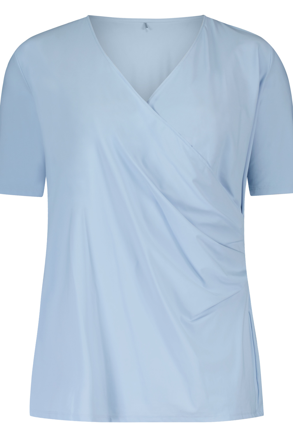 Top met V-hals en overslag met plooitjes aan de voorzijde.