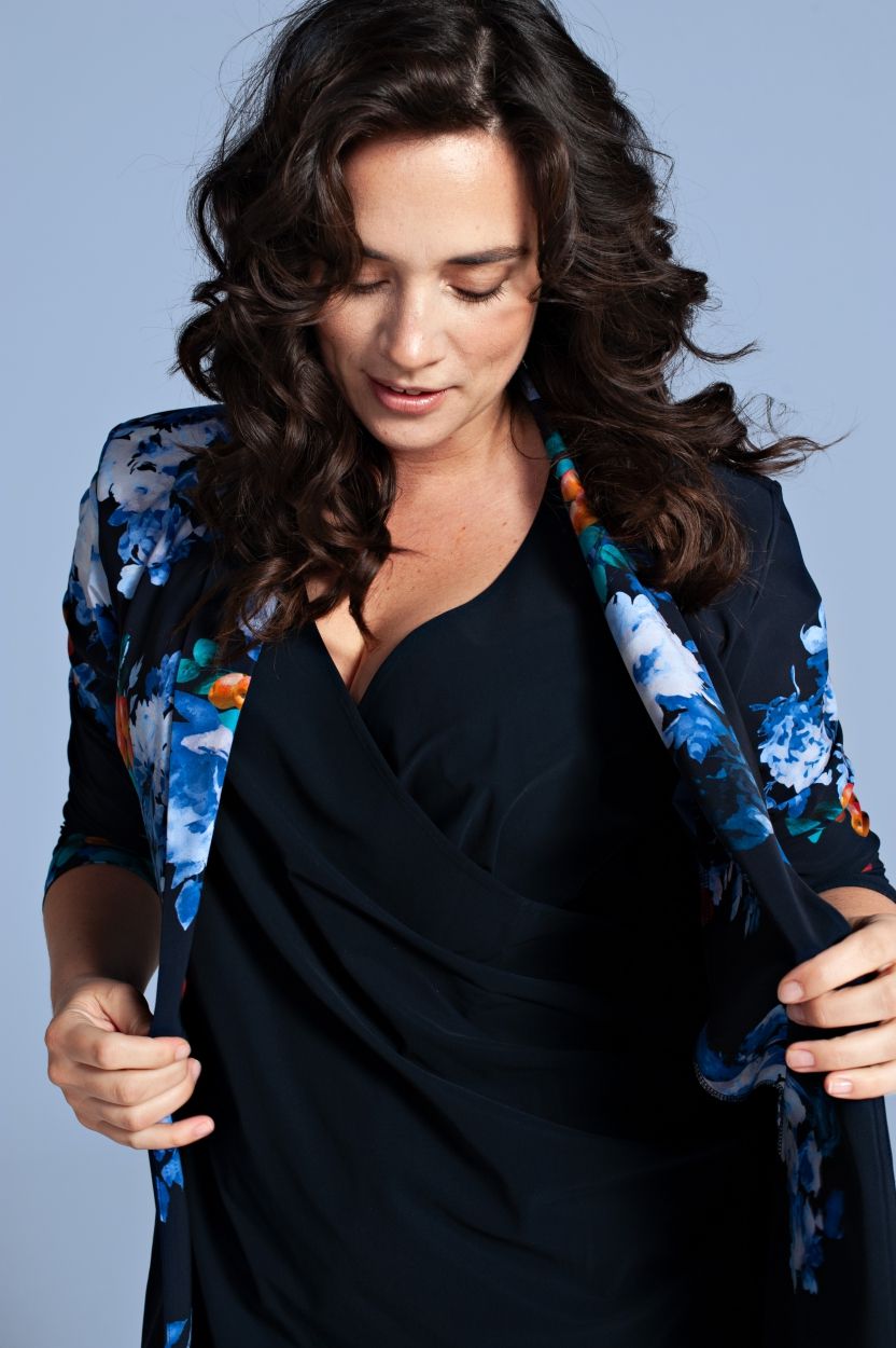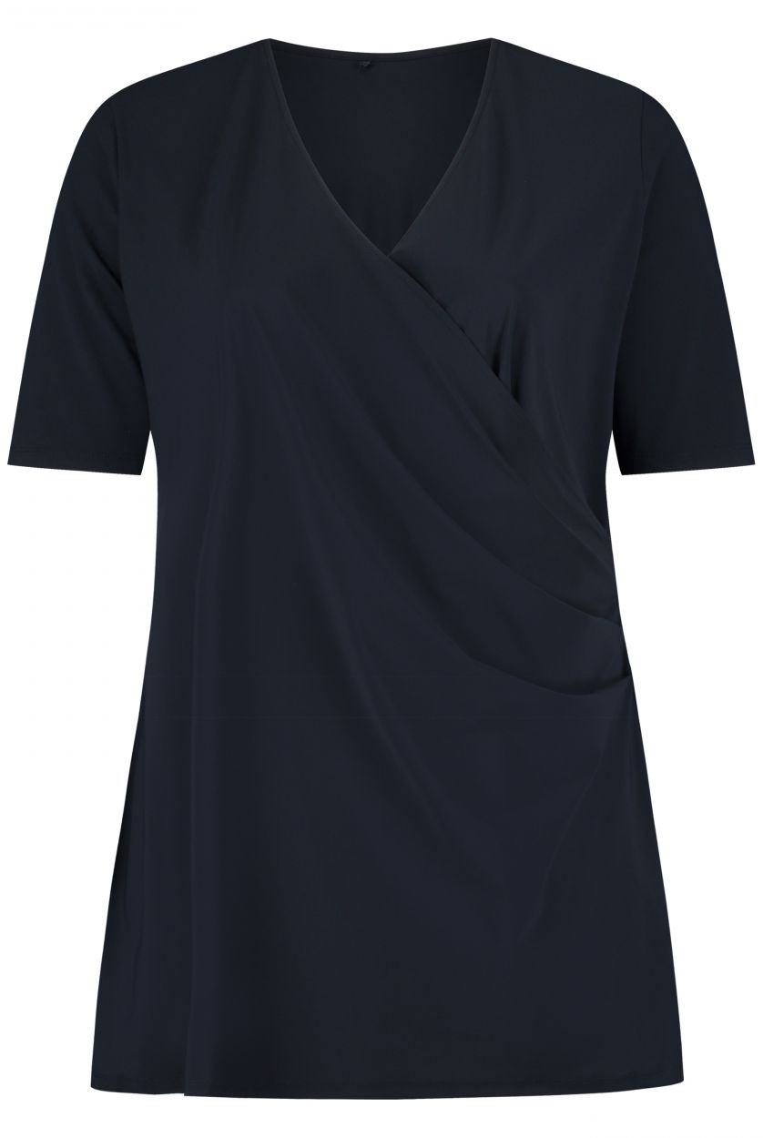 Top met V-hals en overslag met plooitjes aan de voorzijde.