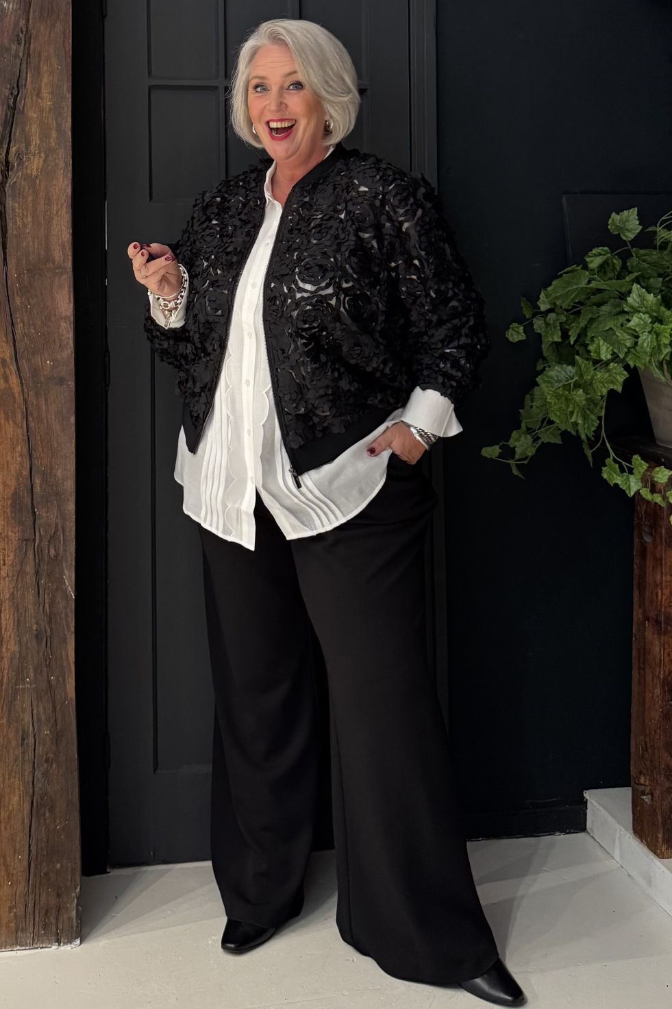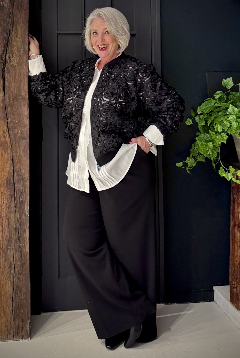 Mooie bandplooi pantalon met een wijde rechte pijp, gemaakt van een soepel vallende stof. De pantalon is voorzien van steekzakken.