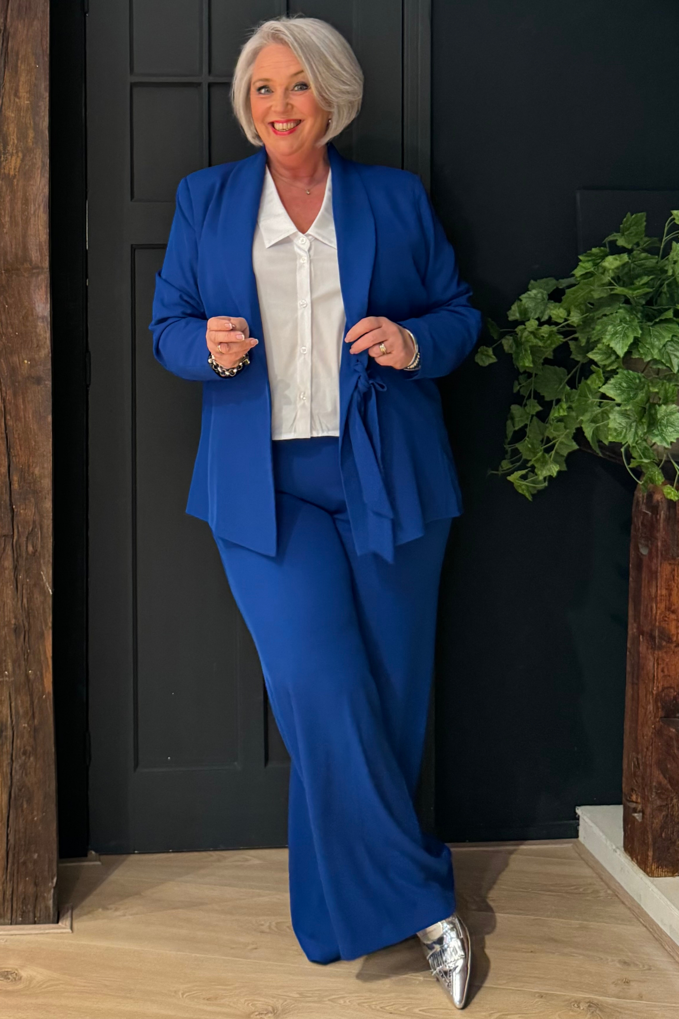 Jasje / blazer met een zachte, eigentijdse snit en een frontale knoopsluiting die de lijn accentueert en het silhouet subtiel elegant maakt. De sjaalkraag geeft een verfijnde touch, terwijl de vloeiende pasvorm comfort en bewegingsvrijheid biedt. Perfect te dragen over jurken of bij sets voor een gecoördineerde, verfijnde look, ideaal voor formele gelegenheden en ceremonies.