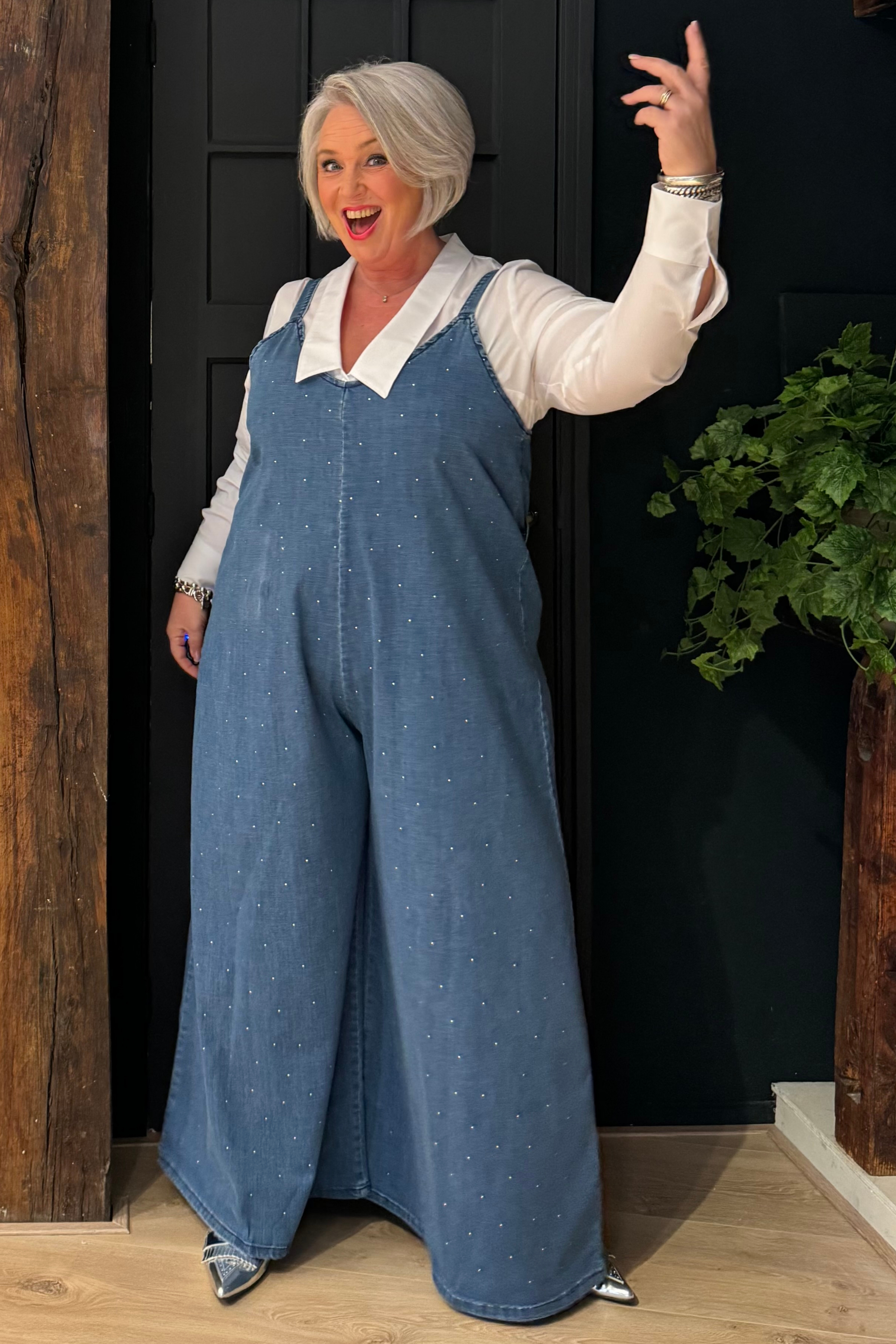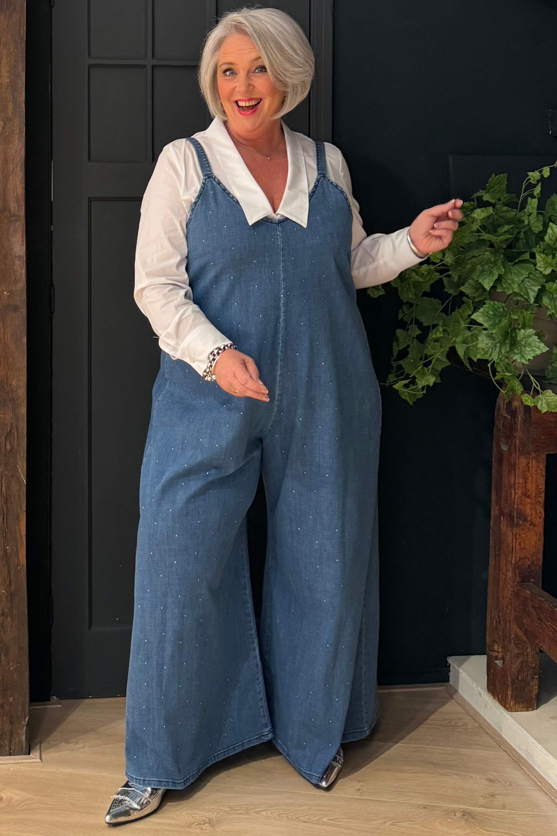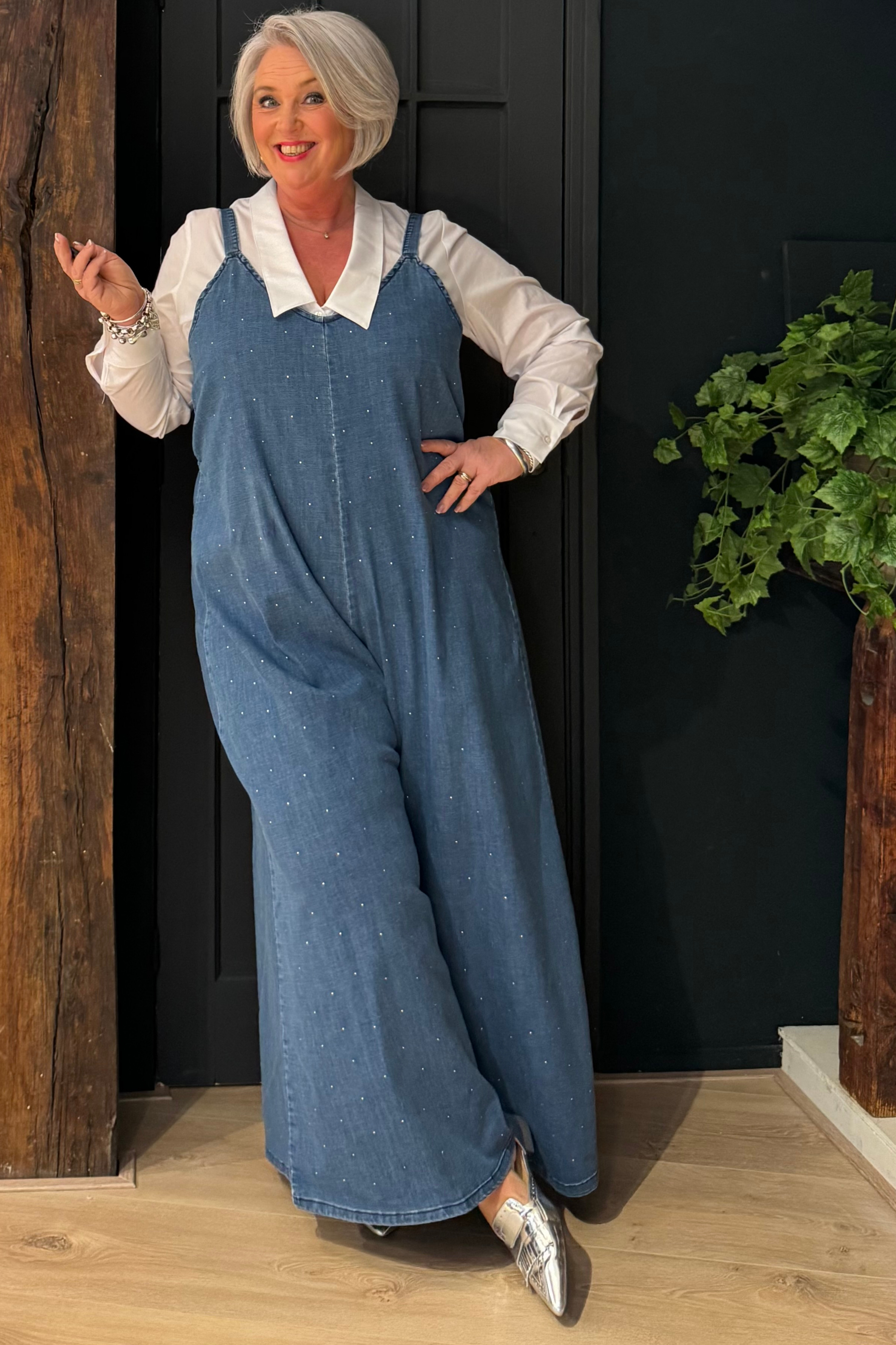Salopette met een eigentijdse en ontspannen stijl die comfort en karakter combineert. Het stretchkatoen beweegt soepel mee en zorgt voor een aangename pasvorm. De glanzende details geven een stijlvol accent, perfect voor nonchalante maar verzorgde looks.
