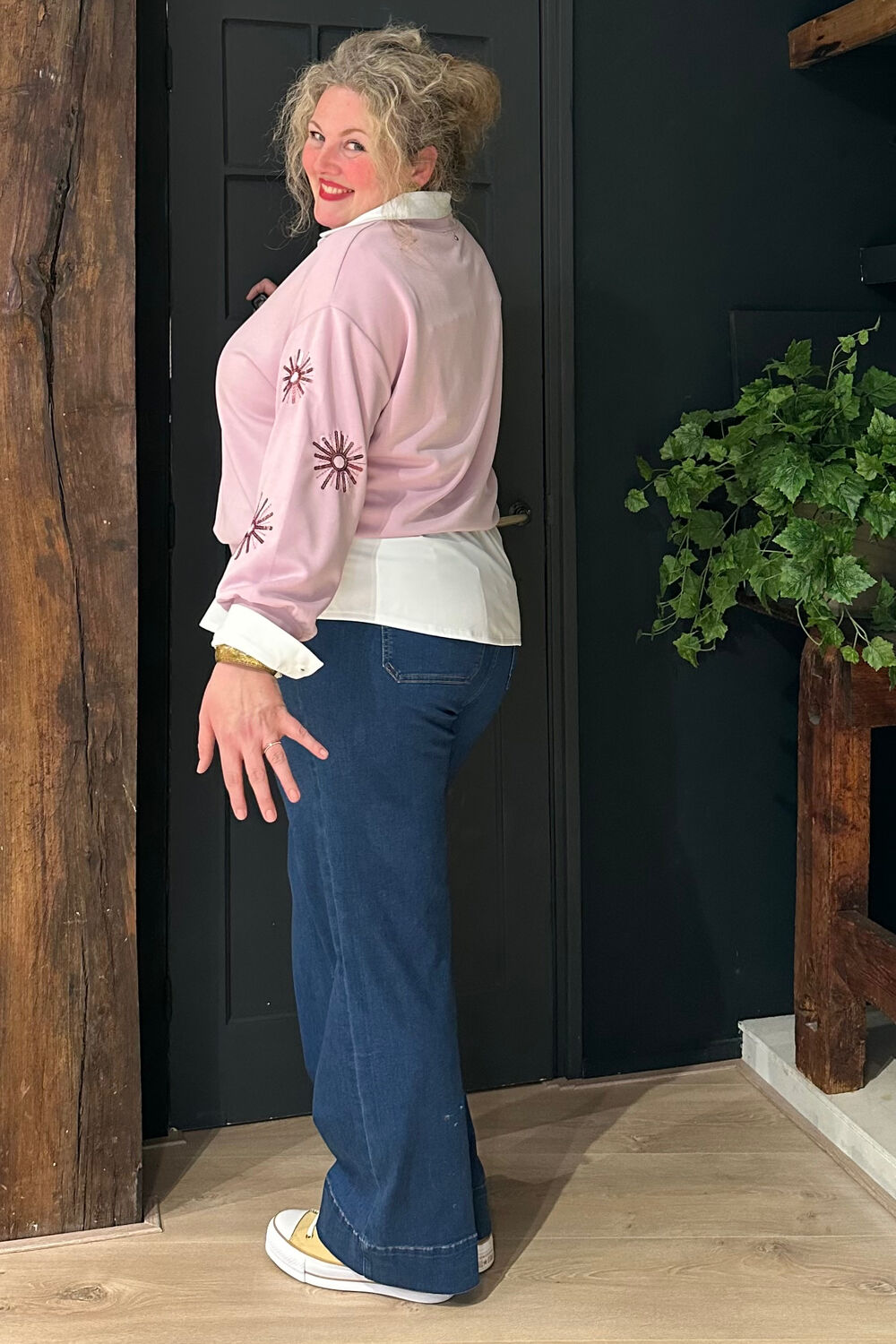 Sweatshirt met V-hals en een comfortabele, losse pasvorm, gekenmerkt door decoratieve borduursels op de mouwen die een lichte en vrouwelijke touch geven. De licht verlaagde schoudernaden zorgen voor een eigentijdse en comfortabele fit. Boorden aan de mouwen en onderkant zijn netjes afgewerkt voor een perfecte pasvorm en een gebalanceerd silhouet. De stof is zacht en aangenaam aanvoelend, ideaal voor casual-chique looks overdag. Perfect te combineren met rechte broeken of denim voor een ontspannen maar verzorgde outfit. ✨