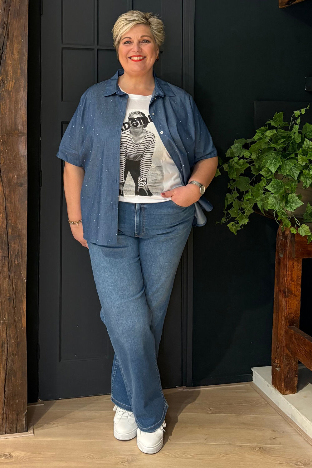 T-shirt van katoen met een grafische print en een eigentijdse, krachtige uitstraling, ideaal om dagelijkse looks karakter te geven. De zachte pasvorm biedt comfort en volgt het lichaam zonder te knellen. Met ronde hals en korte mouwen is hij gemakkelijk te dragen en veelzijdig inzetbaar, van casual tot vrije tijd. De frontale print geeft een moderne, urban touch, terwijl het katoen zorgt voor ademend vermogen en het hele dag door prettig draagcomfort.