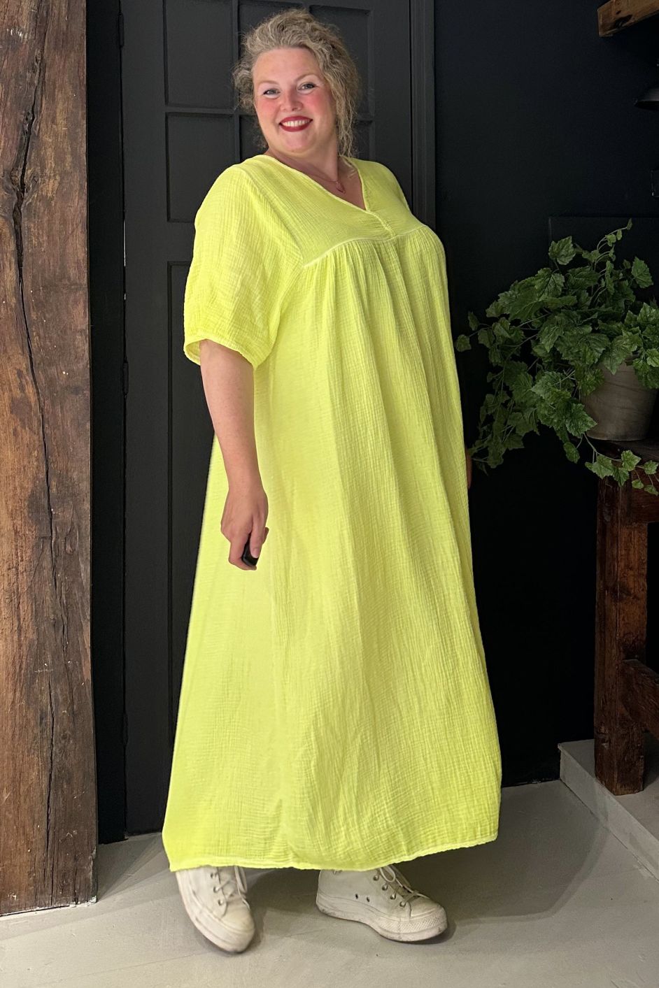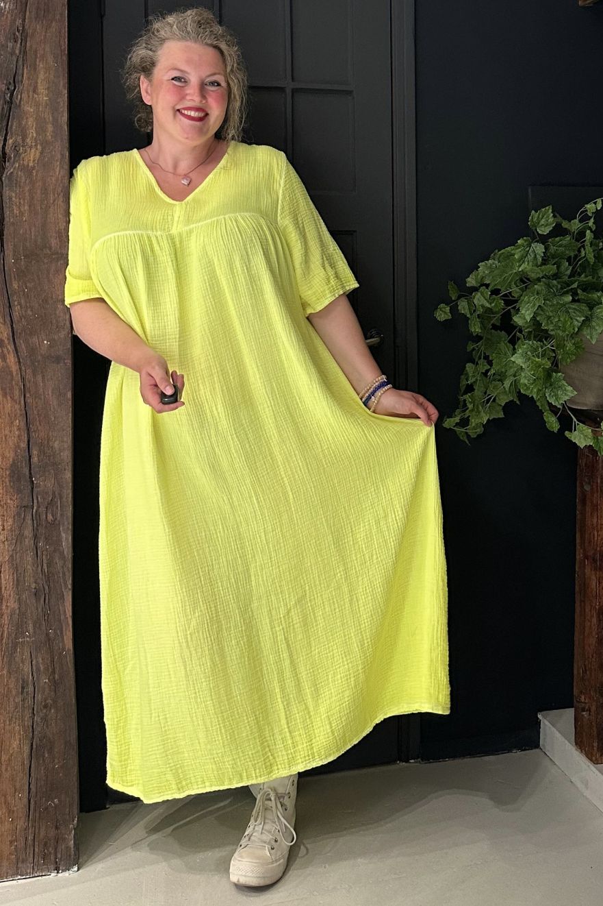 Wafel jurk met V-hals, draagbaar tot maat 50-52 O/O 70cm Lengte 140cm