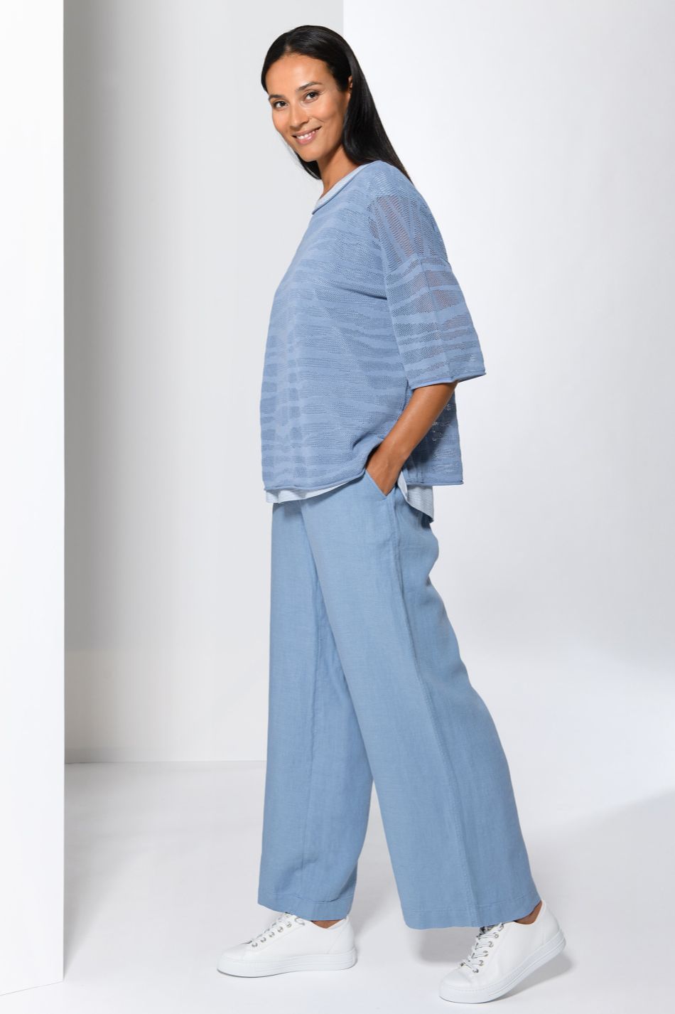 Lange wijdvallende broek met steekzakken
