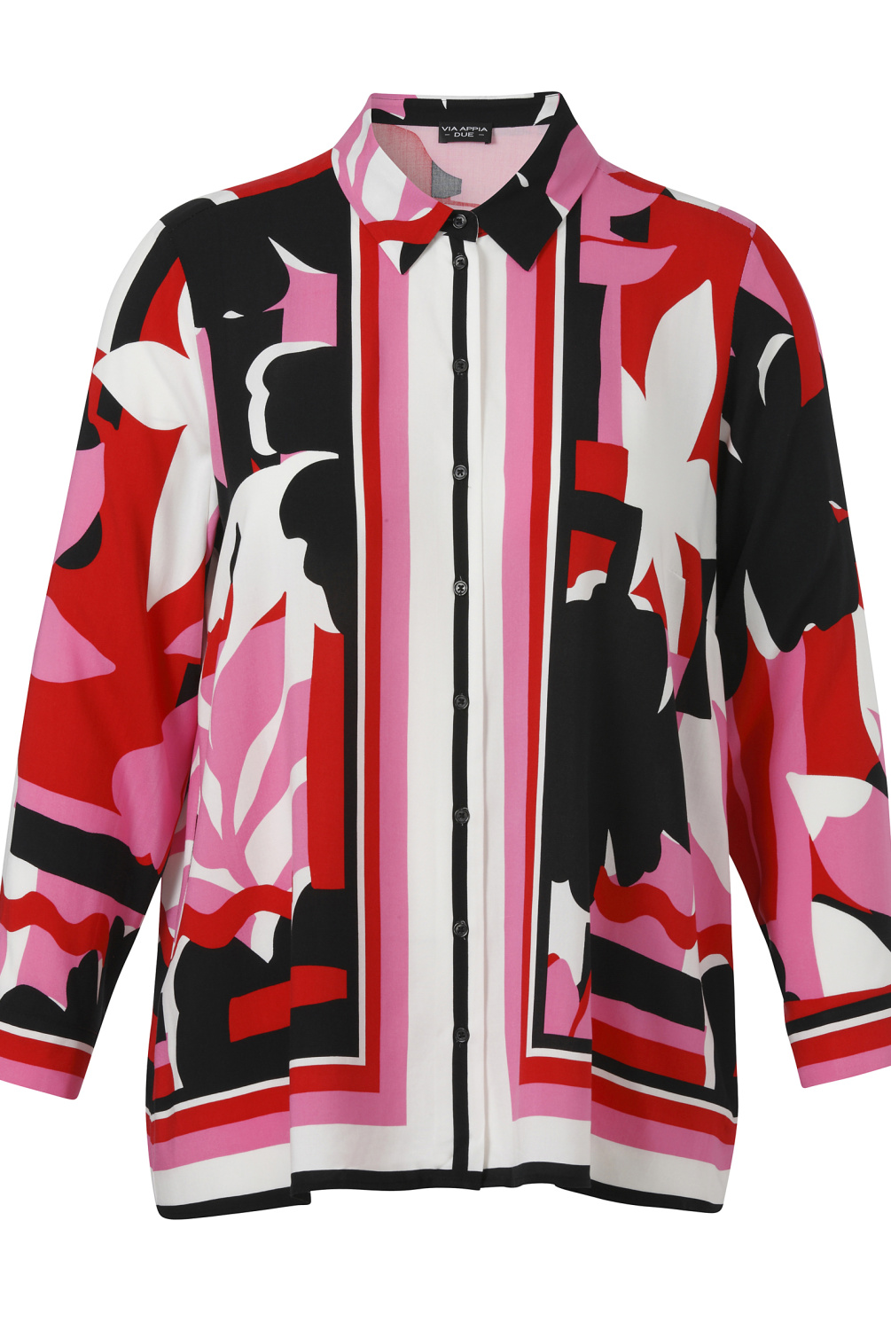 Leuke blouse doorknoopblouse van VIA APPIA met een klassieke kraag en een opvallende all-over grafische print.
