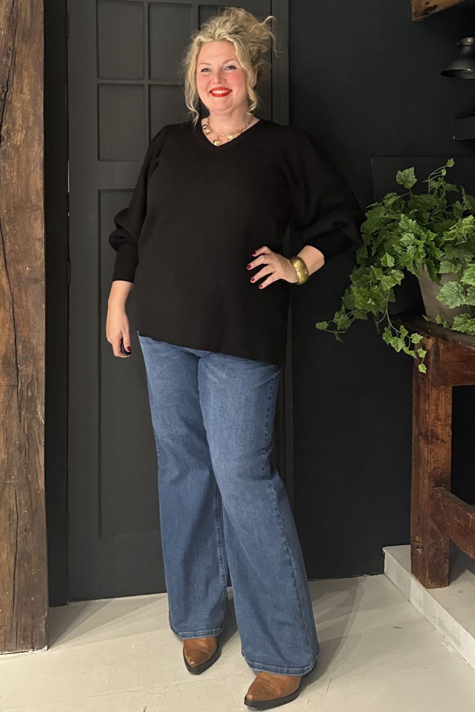 WA-NANINE 3 is een blouse gemaakt van 50% LENZING™ ECOVERO™ Viscose, 27% Polyester, 23% Nylon. Het ontwerp heeft een V-hals met subtiele gebreide texturen en ribgebreide manchetten. Combineer het met een nette broek voor een verfijnde uitstraling of met jeans voor casual uitjes.