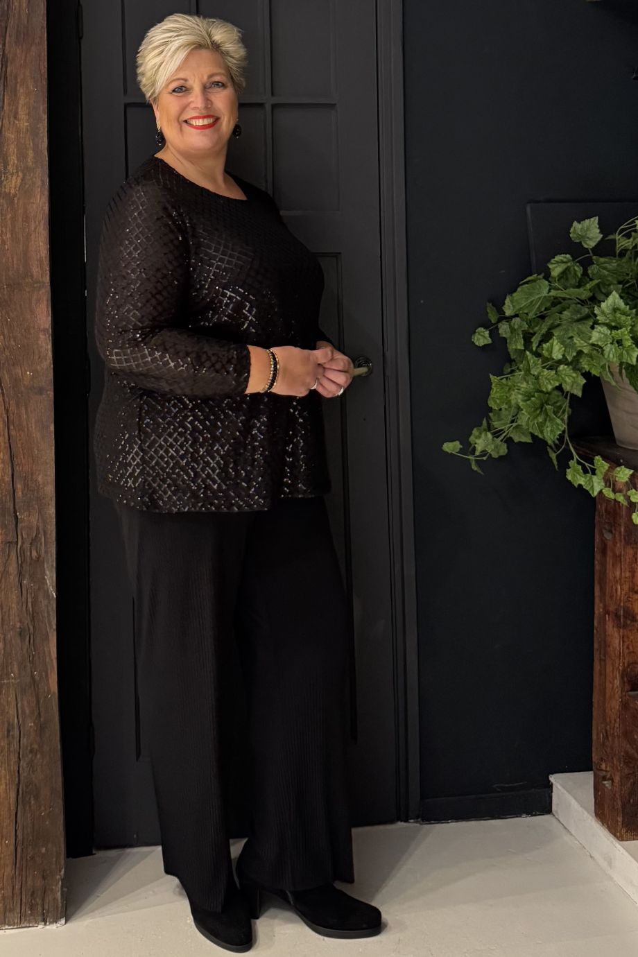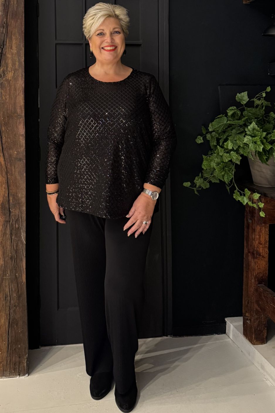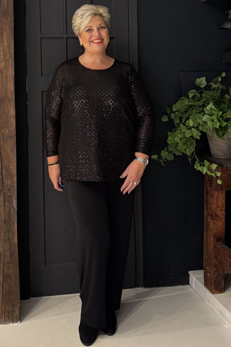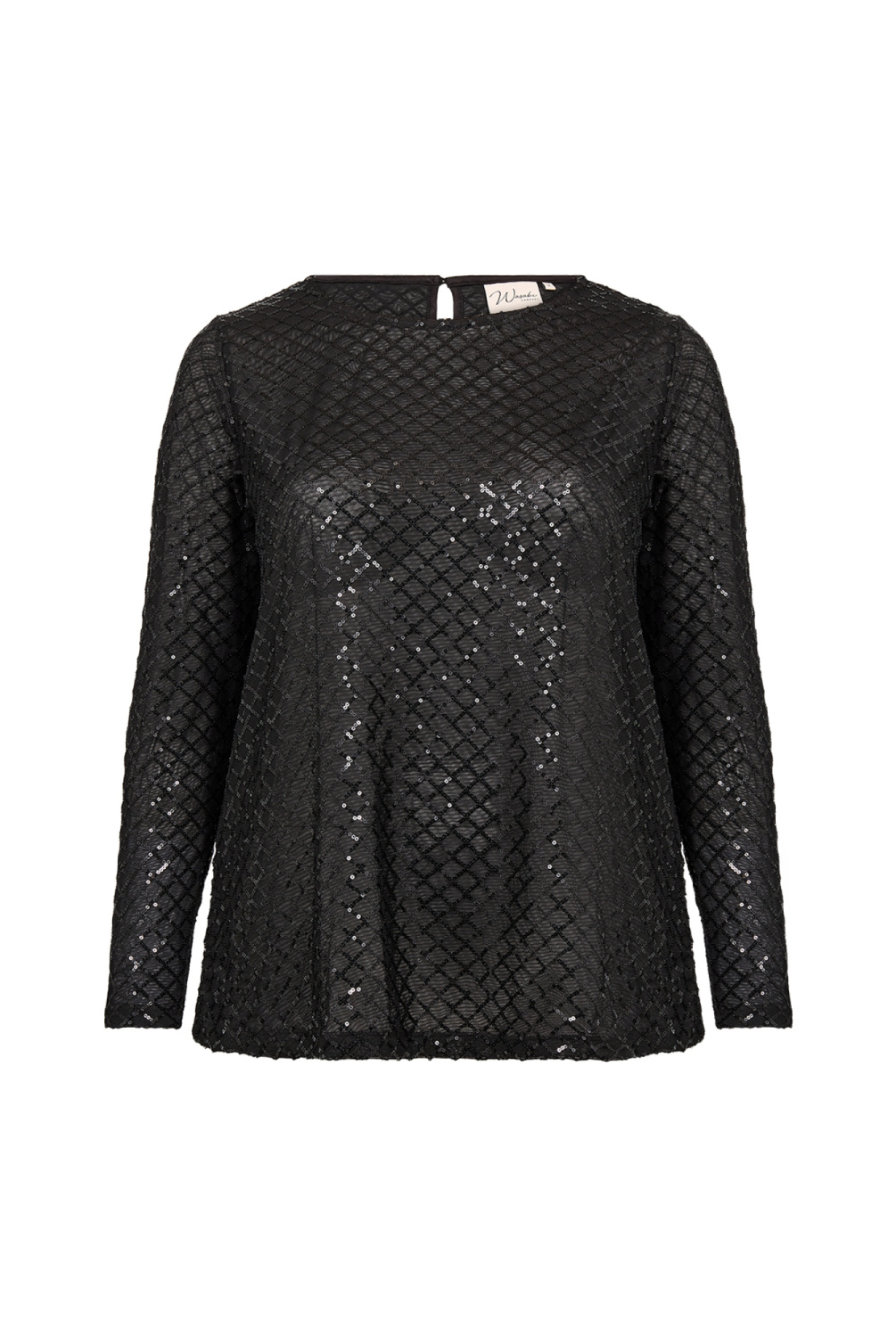 WA-SHAO 1 is een blouse, gemaakt van 95% polyester en 5% elastaan. Het heeft een ronde halslijn, lange mouwen en een elegant paillettenpatroon. Combineer het met een op maat gemaakte broek of een strakke rok voor een unieke en stijlvolle uitstraling.