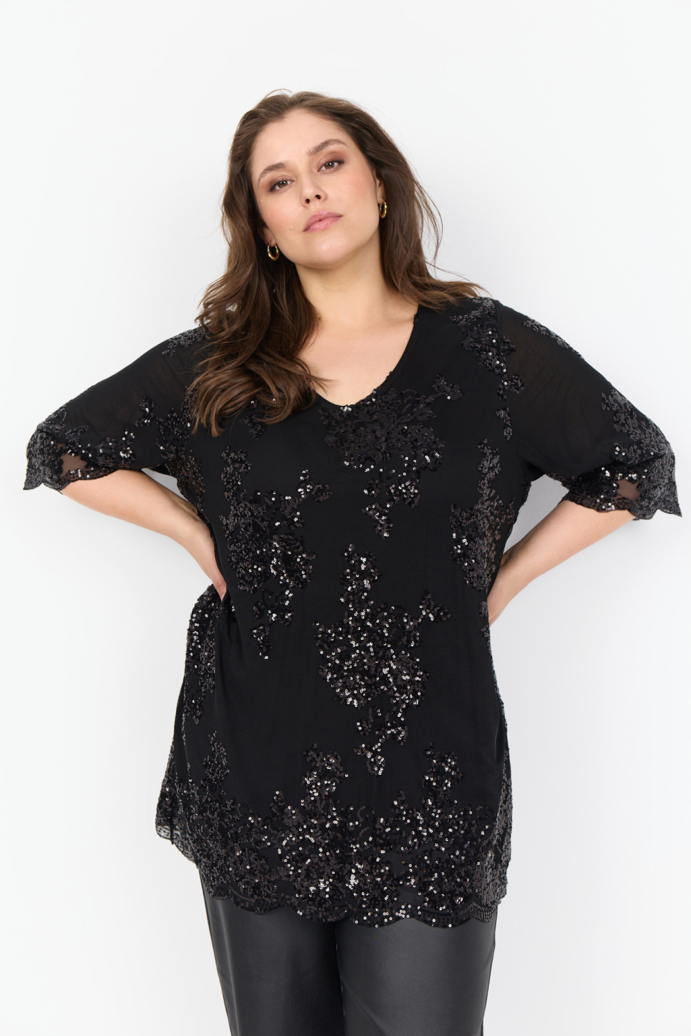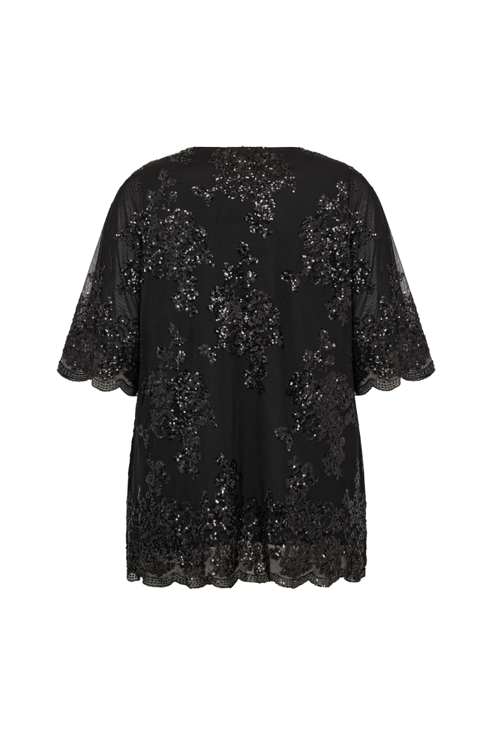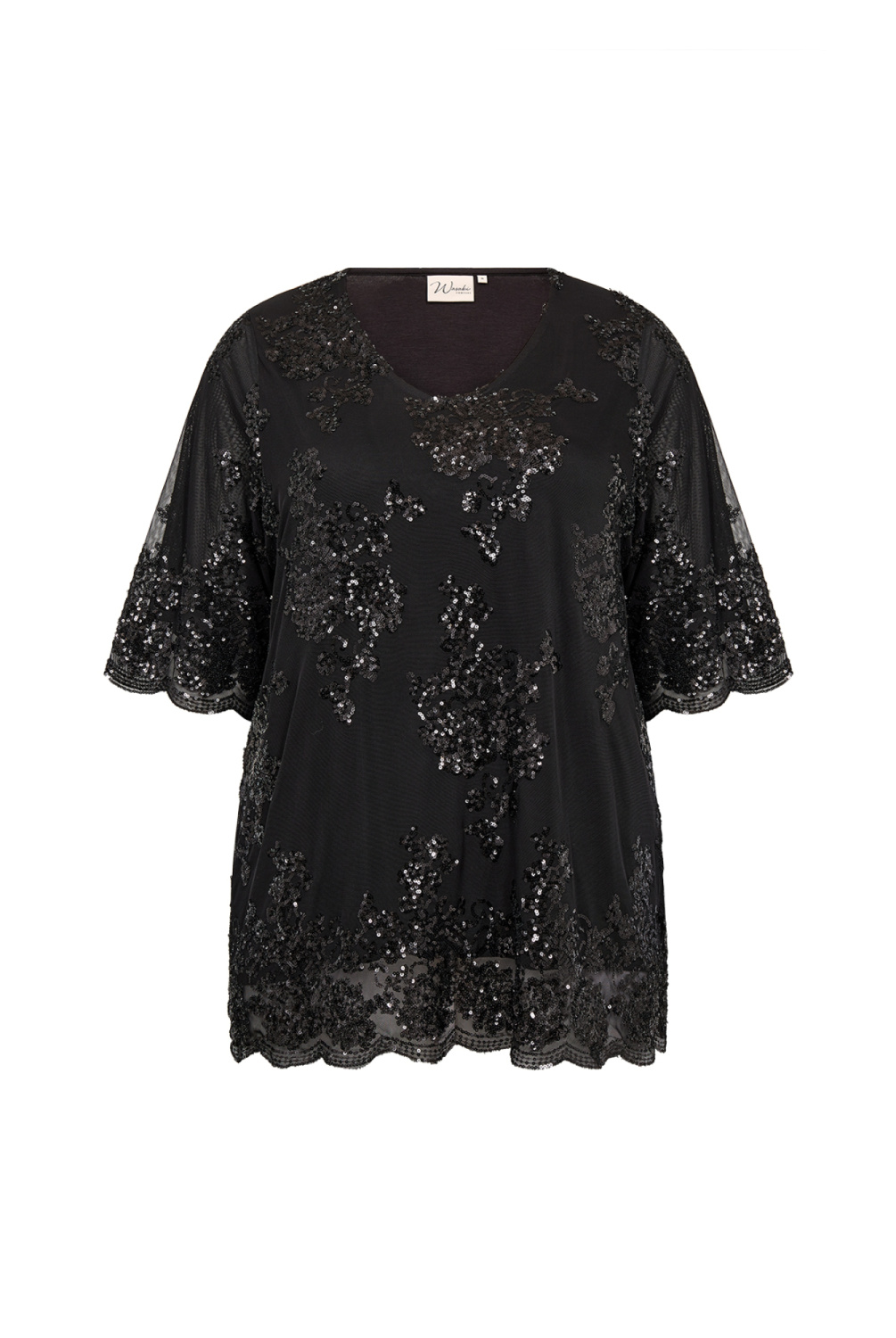 De WA-SUNN 1 Blouse is gemaakt van 95% polyester en 5% elastaan. Deze elegante blouse heeft korte mouwen, pailletten details, een ronde halslijn en een relaxed fit. Combineer het met een nette broek of een strakke rok voor een coole uitstraling.