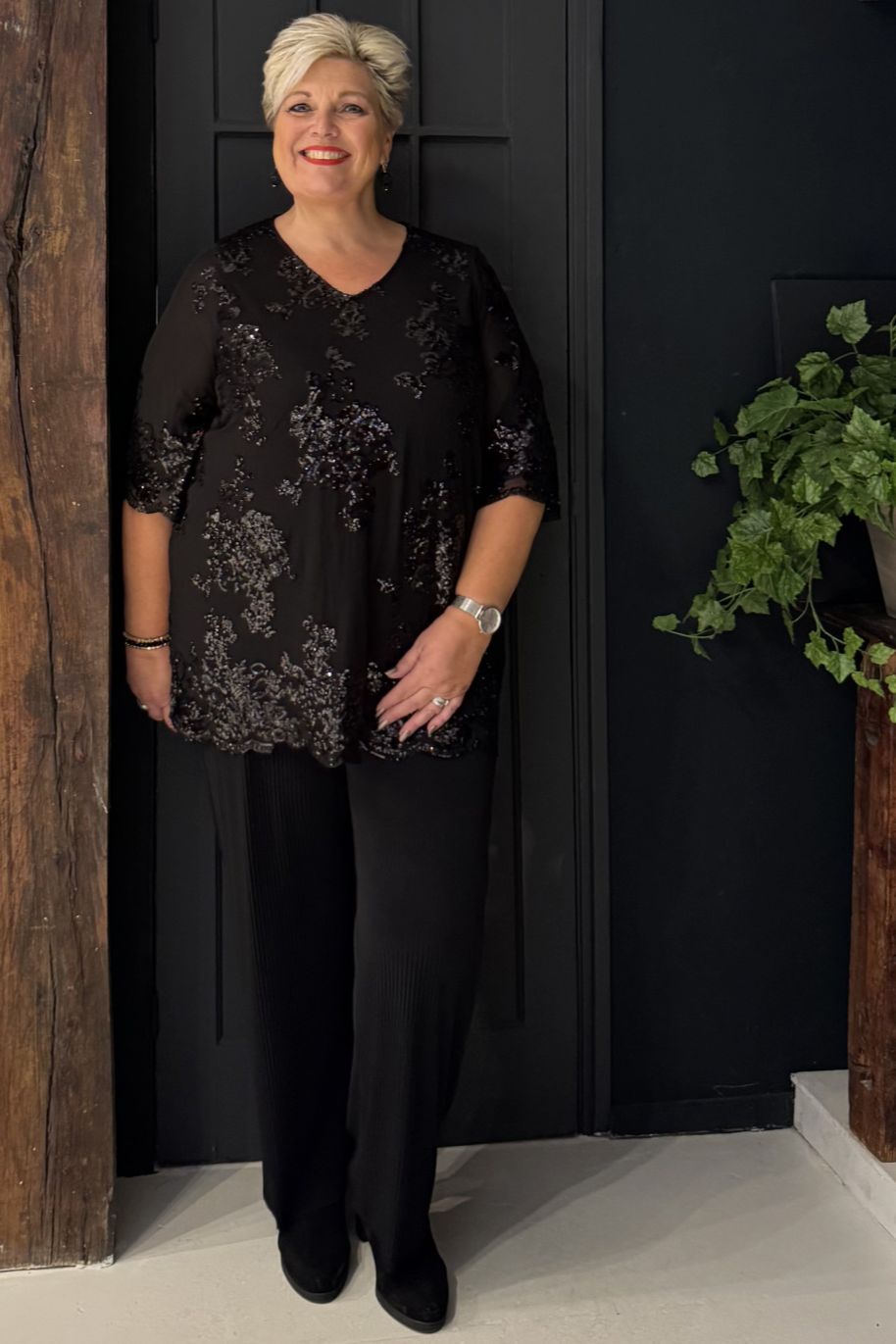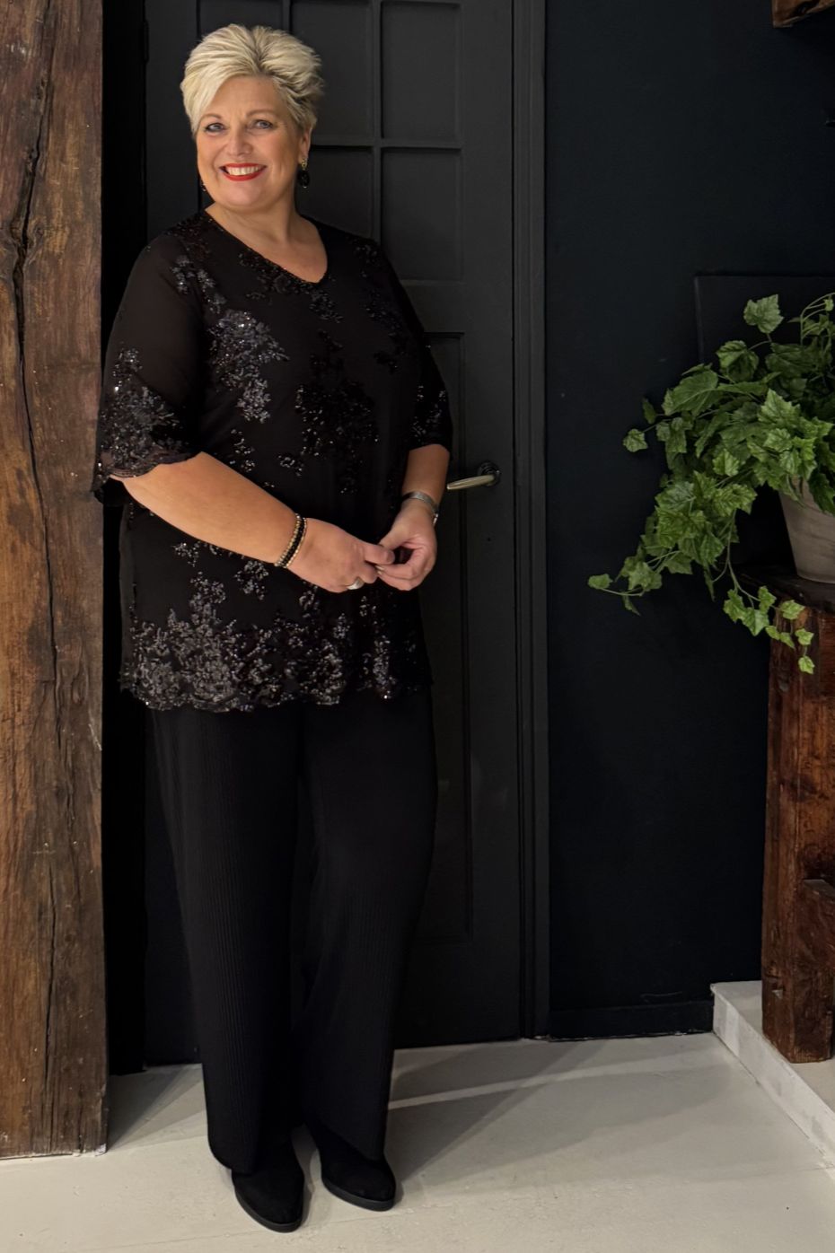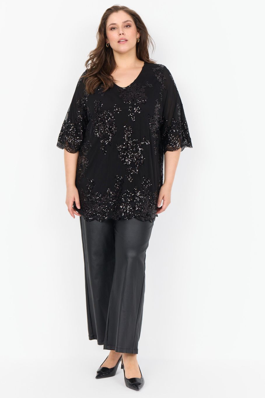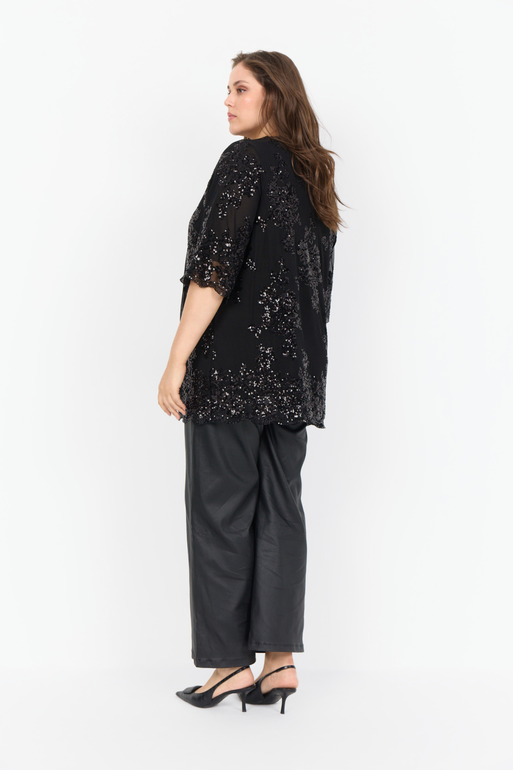 De WA-SUNN 1 Blouse is gemaakt van 95% polyester en 5% elastaan. Deze elegante blouse heeft korte mouwen, pailletten details, een ronde halslijn en een relaxed fit. Combineer het met een nette broek of een strakke rok voor een coole uitstraling.