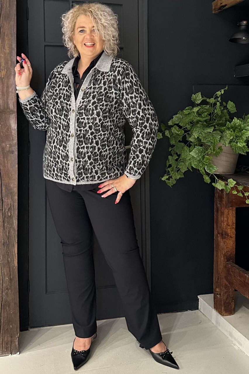 WA-NIMO 1 is een vest, gemaakt van 65% polyester, 19% nylon, 13% acryl en 3% elastaan. Dit vest heeft een klassieke kraag, een knoopsluiting aan de voorkant, twee voorzakken en een gedurfd dierenprint. Combineer het met jeans en laarzen voor een stijlvolle maar comfortabele look.