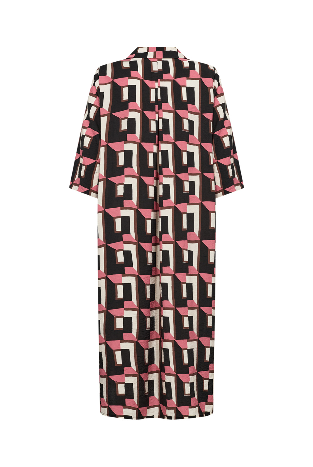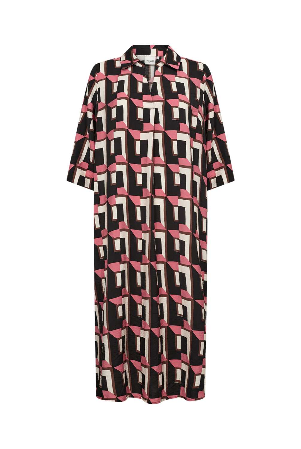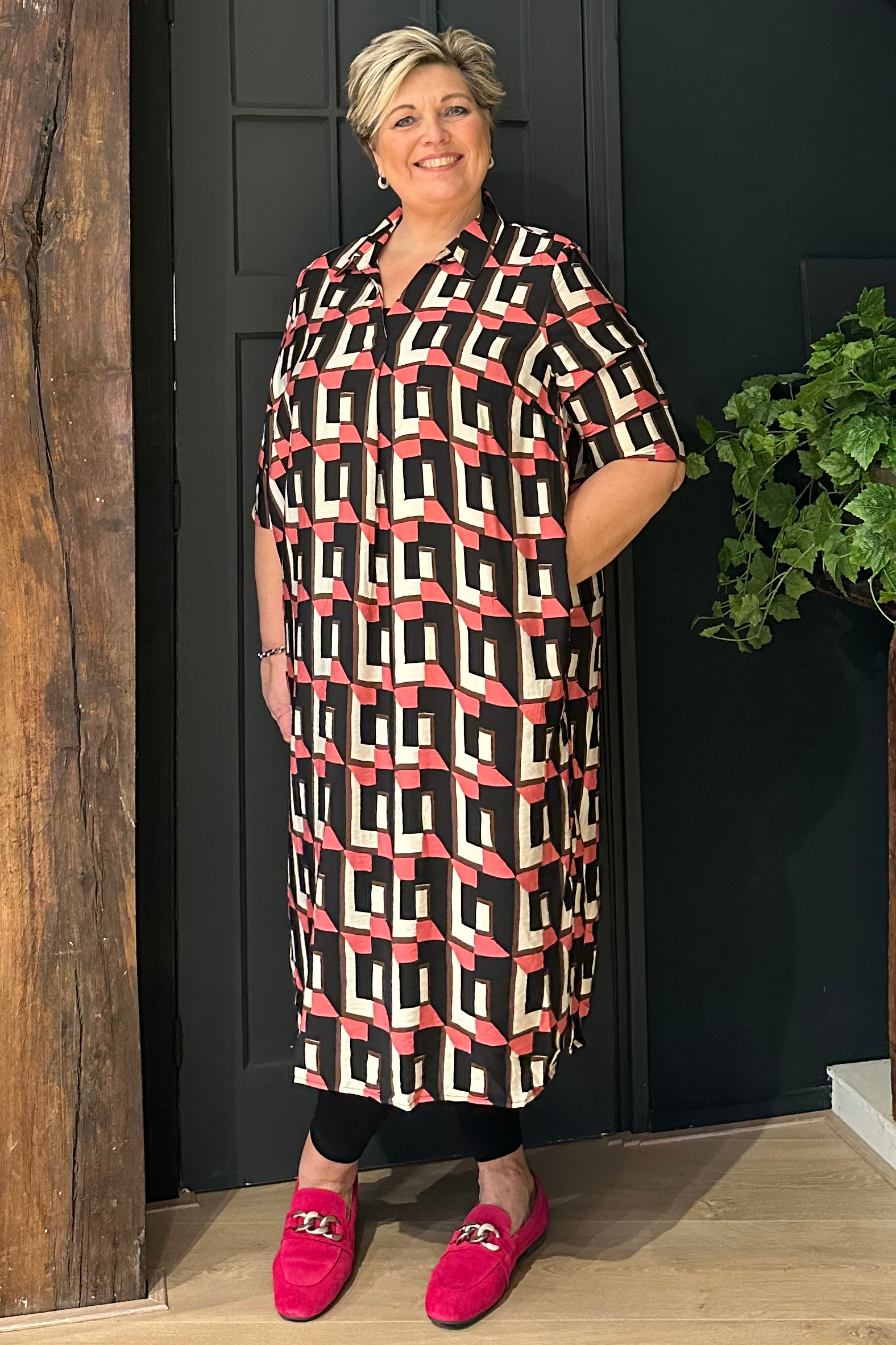 WA-SARENA 3 is een vrouwelijke jurk gemaakt van 82% LENZING™ ECOVERO™ viscose en 18% polyamide. De jurk heeft een inkeping in de kraag, een stijlvolle geometrische print en valt tot halverwege de kuit. Combineer deze elegante jurk met eenvoudige sandalen of elegante laarzen voor een coole look.