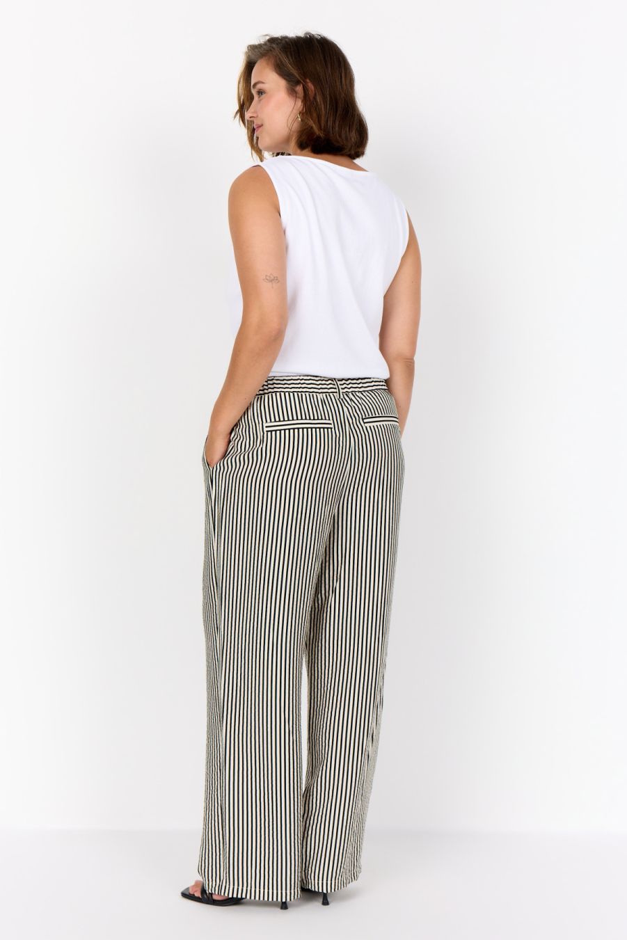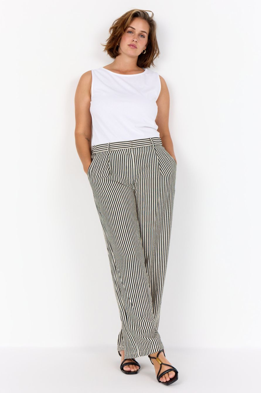 WA-HEDI 2 is een klassieke broek, gemaakt van 82% LENZING™ ECOVERO™ viscose en 18% polyamide. Deze elegante broek heeft een opvallend verticaal streeppatroon en een relaxte, lange pasvorm. Combineer hem met een eenvoudige blouse of een aansluitende top voor een coole, verzorgde look.
