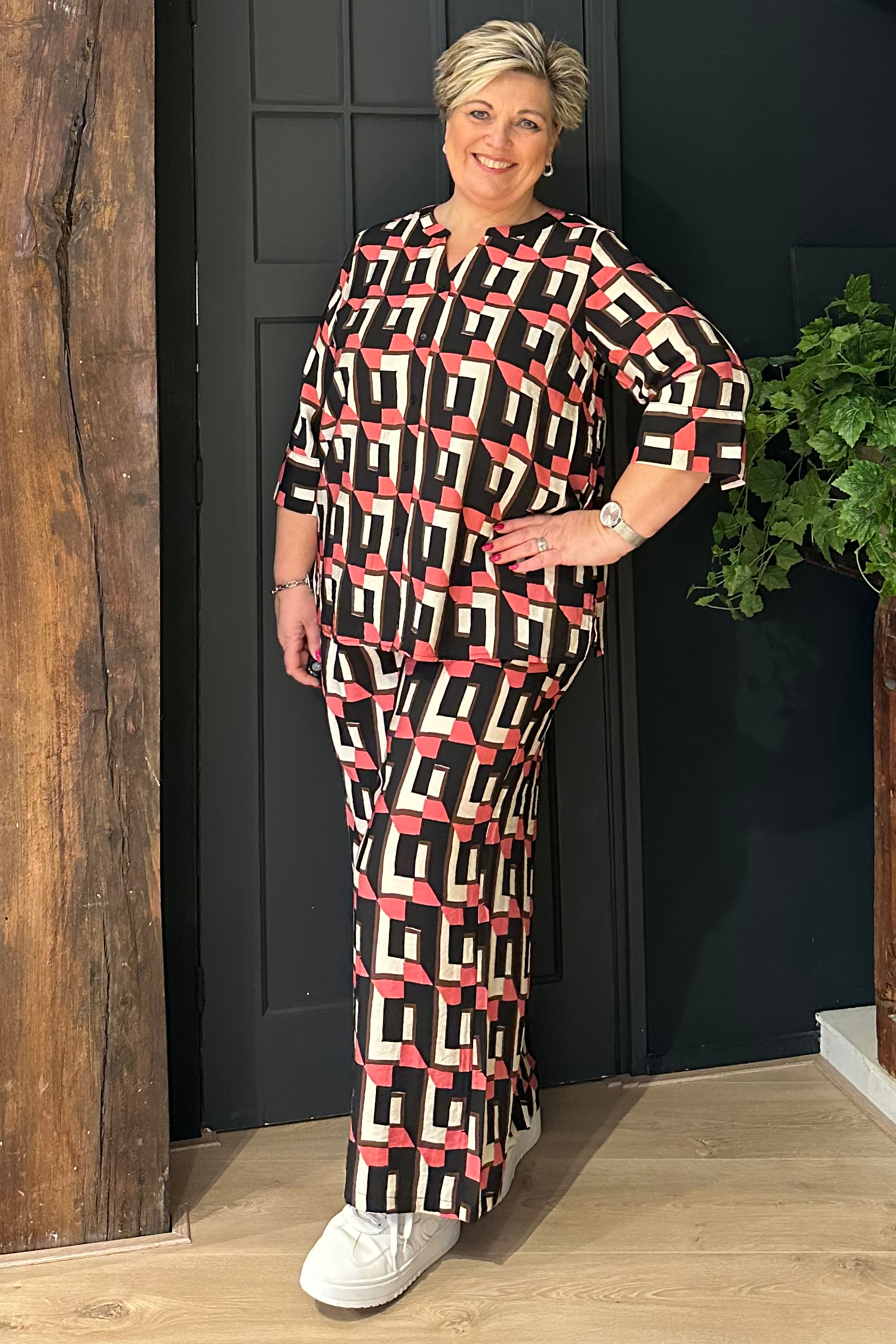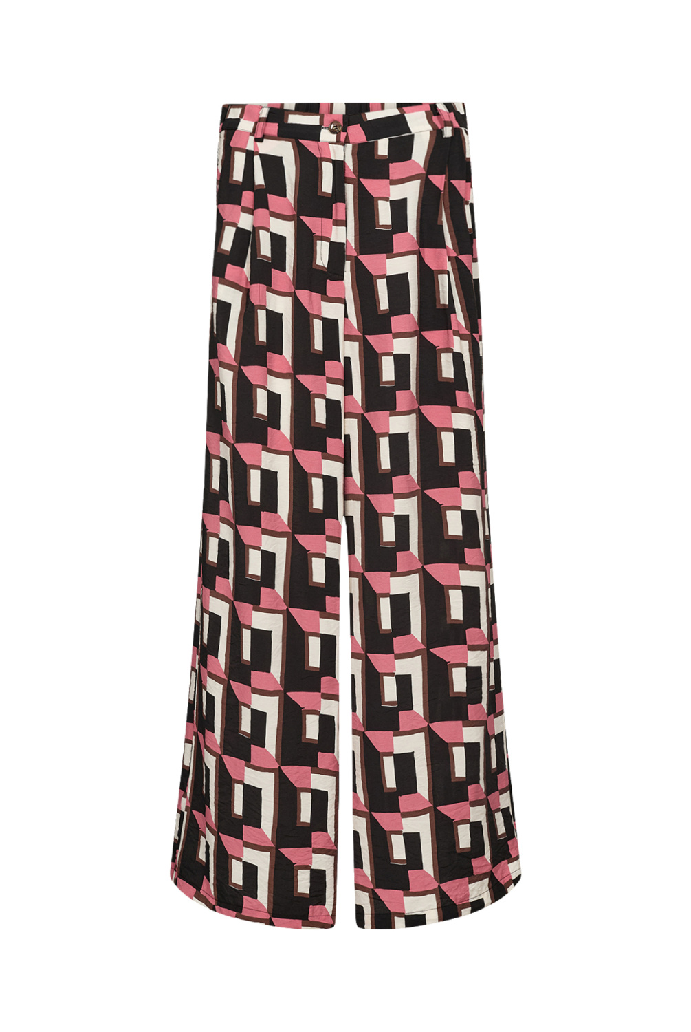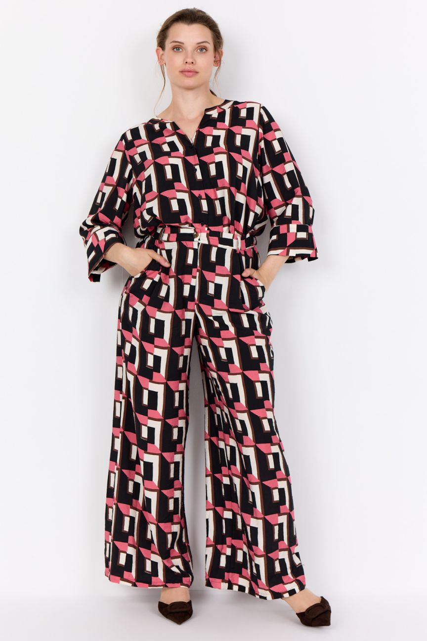 WA-SARENA 2 is een coole broek, gemaakt van 82% LENZING™ ECOVERO™ viscose en 18% polyamide. Deze elegante broek heeft een middelhoge taille, wijde pijpen en een opvallende geometrische print. Combineer hem met een eenvoudige blouse of een aansluitende top voor een opvallende look.