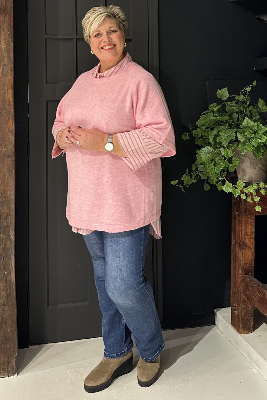 WA-CHANIN 1 is een vrouwelijke pullover, gemaakt van een mix van 74% acryl, 24% polyester en 2% elastaan. Het heeft een klassieke ronde hals, korte mouwen en een comfortabele pasvorm. Draag het met een spijkerbroek of casual broek voor een ontspannen en elegante look.