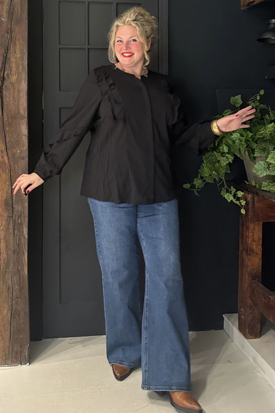Het WA-NOMA 4 Shirt is gemaakt van 50% LENZING™ ECOVERO™ Viscose en 50% biologische katoen. Het heeft gerimpelde details op de mouwen, een verborgen knoopsluiting en een discrete v-hals. Combineer het met een gepaste broek of een rok voor een elegante look.