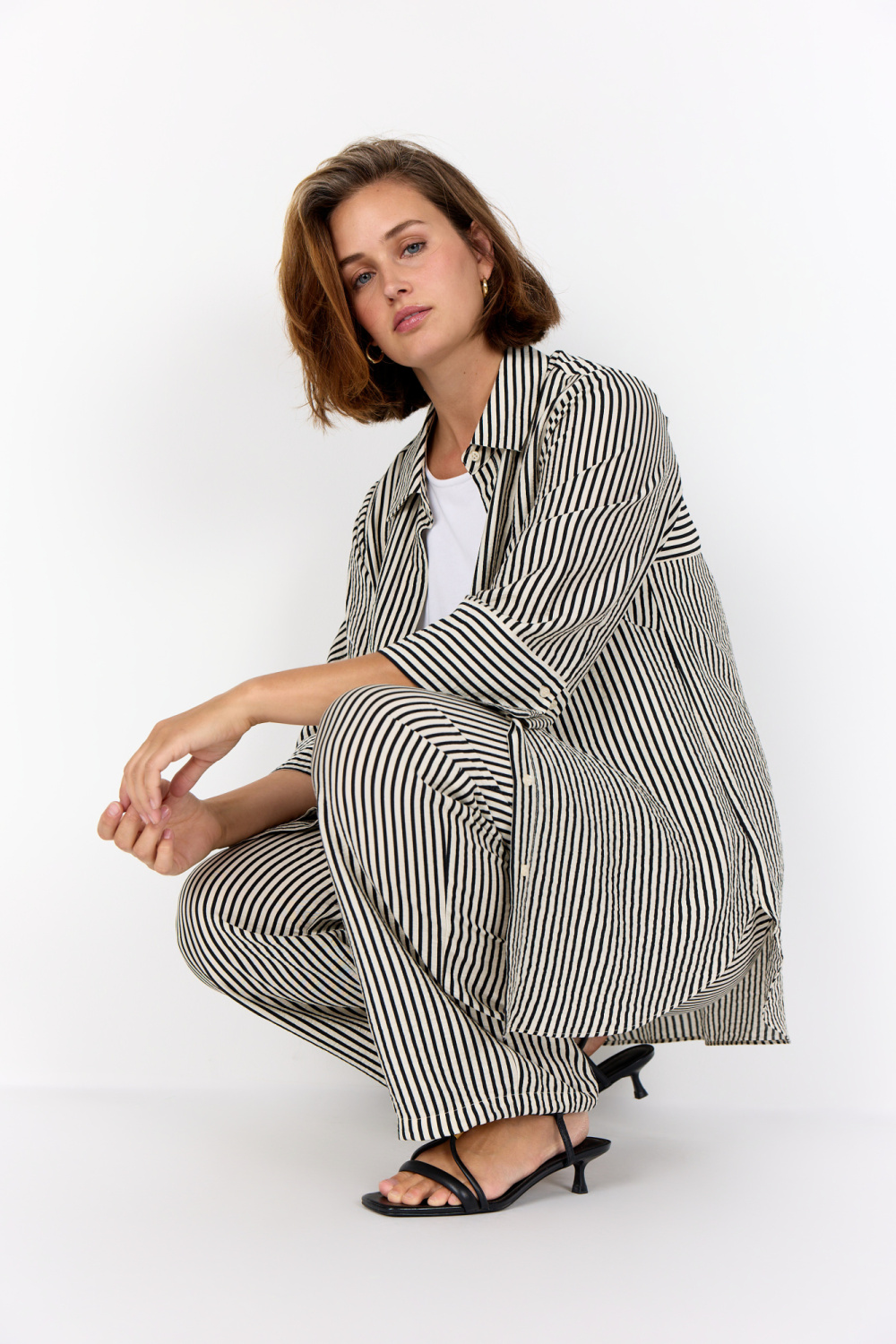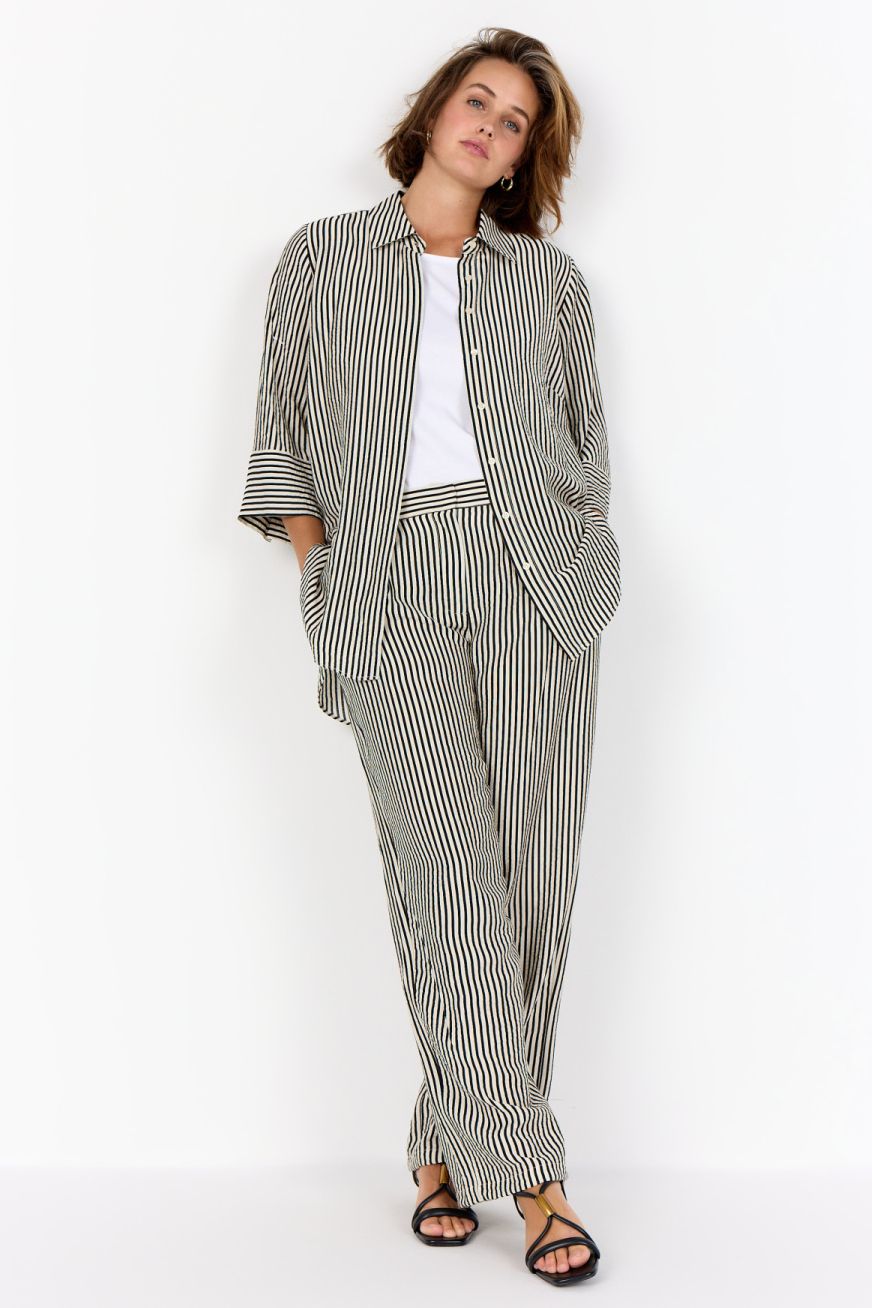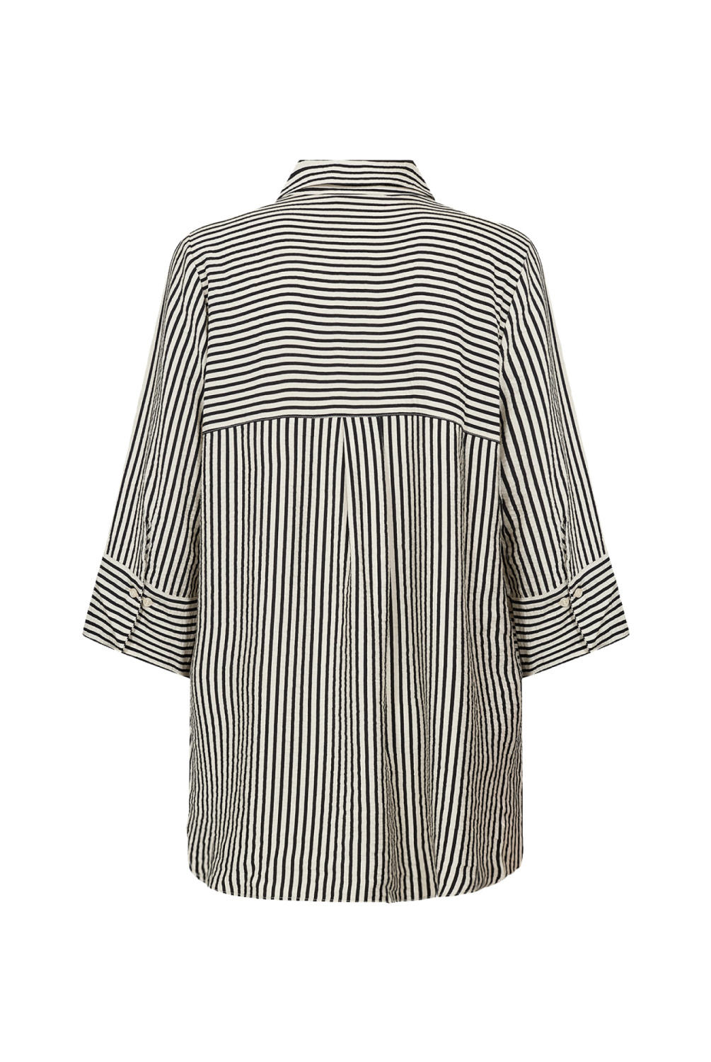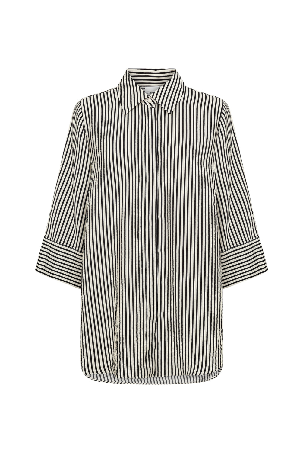 WA-HEDI 1 is een klassiek shirt, gemaakt van 82% LENZING™ ECOVERO™ viscose en 18% polyamide. Het heeft verticale strepen, een klassieke kraag, een knoopsluiting aan de voorkant en driekwartmouwen met omgeslagen manchetten. Combineer het met een nette broek voor een elegante look of draag het casual met een jeans.