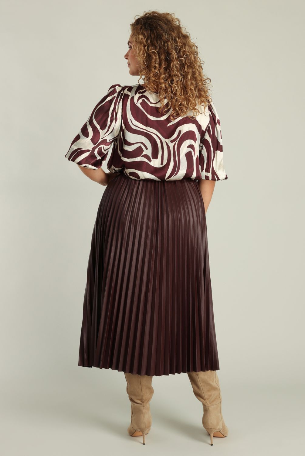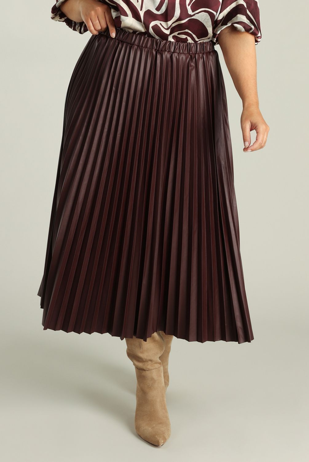 Deze plissé rok combineert een vrouwelijke pasvorm met een stoer materiaal. Het PU geeft een licht glanzende finish, terwijl de elastische tailleband comfortabel aansluit. De rok valt op kuitlengte en beweegt soepel mee bij elke stap. Ideaal voor een geklede look met een vleugje power.