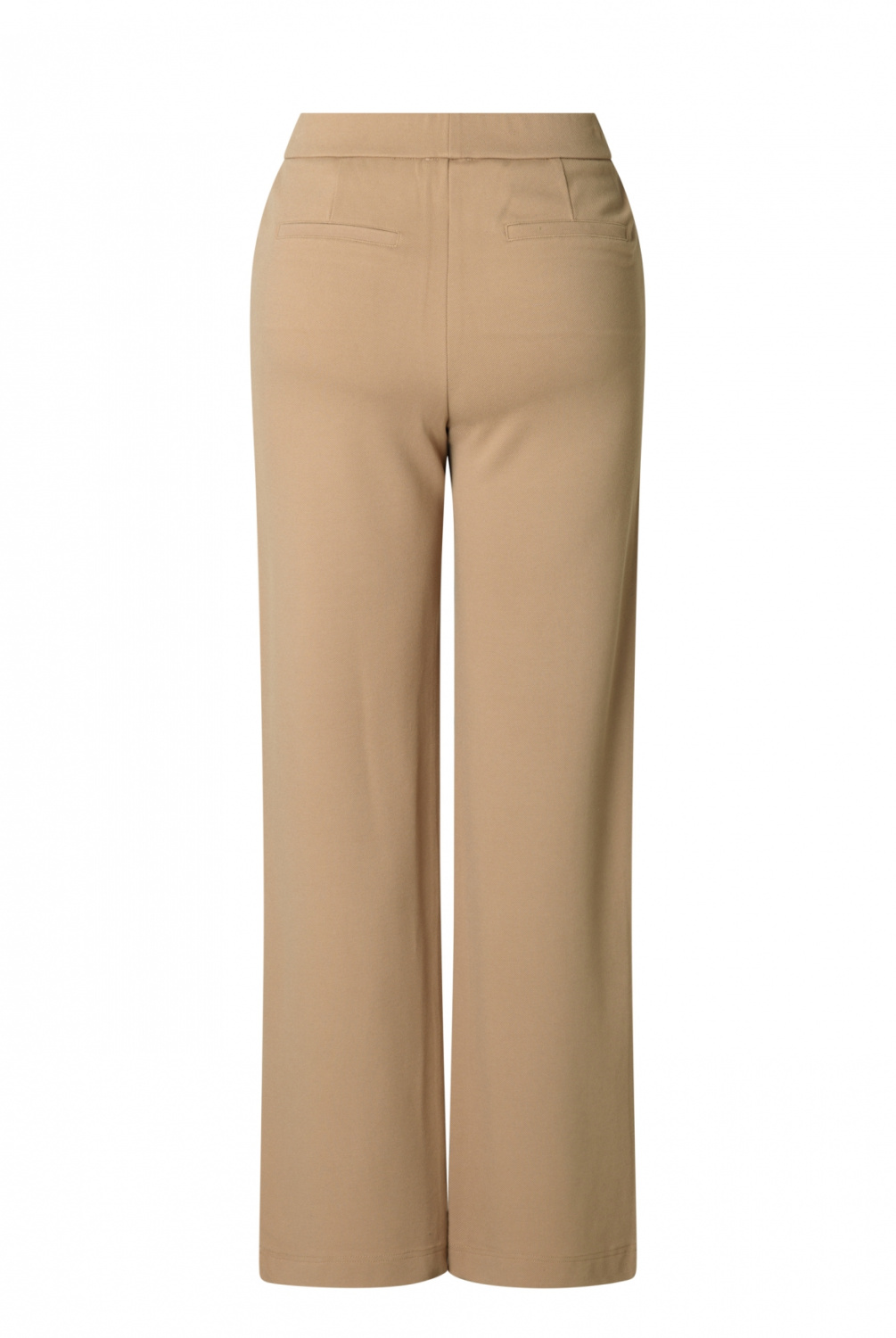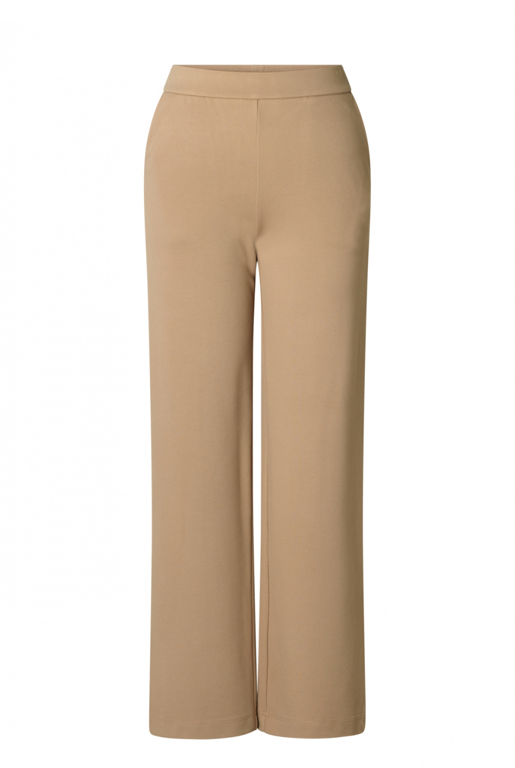 Superfijne zachte zomerpantalon in een fijne jersey kwaliteit. Deze pantalon heeft een zachte elastische tailleband, steekzakken en kleine paspelzakjes achter. De pijpen vallen wijd en recht.