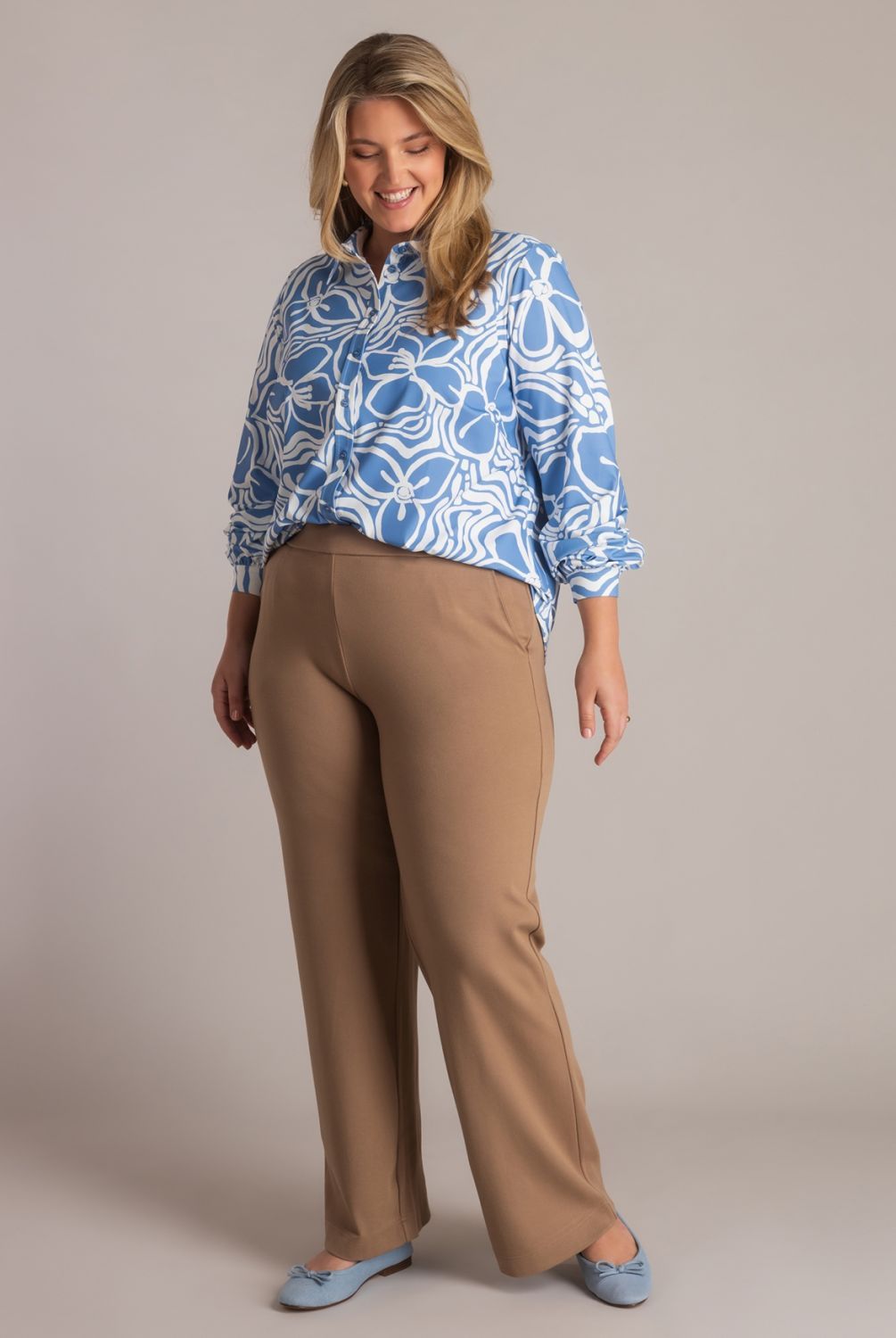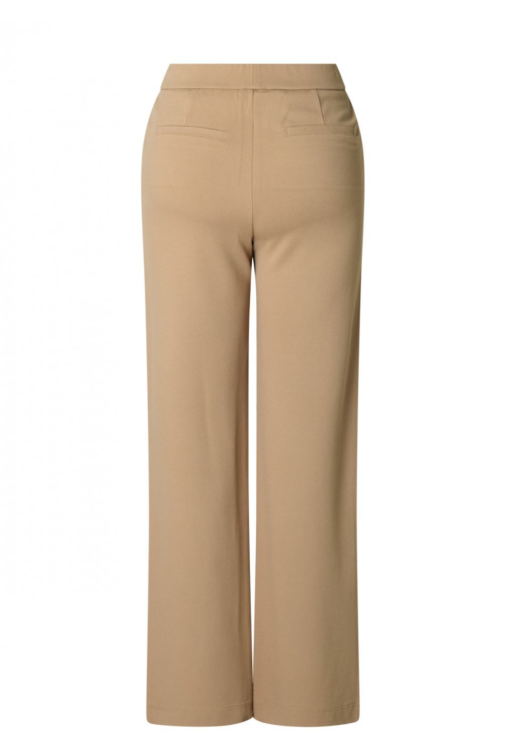 Superfijne zachte zomerpantalon in een fijne jersey kwaliteit. Deze pantalon heeft een zachte elastische tailleband, steekzakken en kleine paspelzakjes achter. De pijpen vallen wijd en recht. Binnenbeenlengte bij een maat 46 is 82 cm.