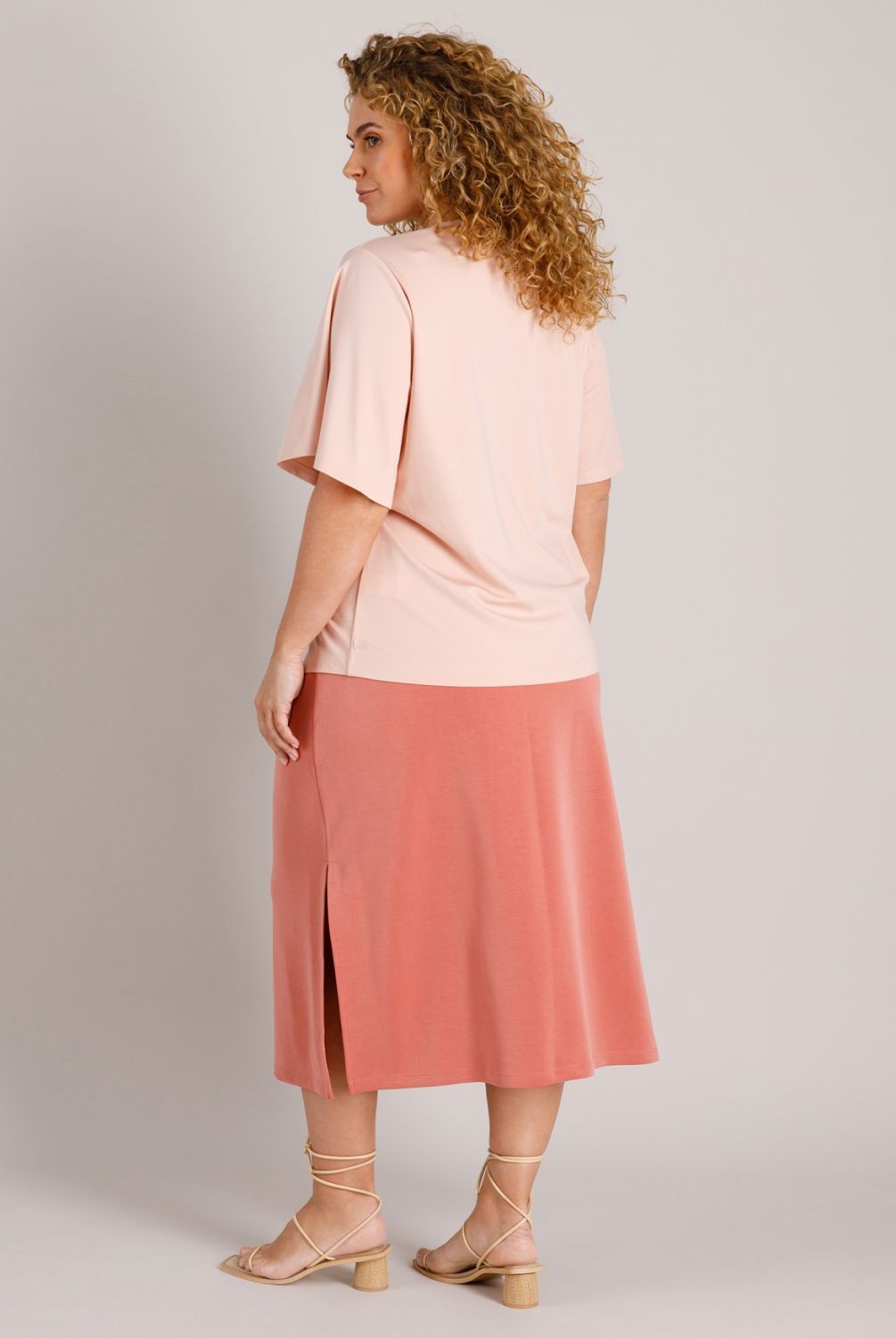 Met zijn soepele viscosemix voelt dit T-shirt prettig zacht aan op de huid. De A-lijn fit biedt wat extra bewegingsvrijheid en volgt het lichaam zonder strak te zitten. De V-hals en de middenplooi maken het tot een makkelijk te combineren top voor zowel werk als vrije tijd.