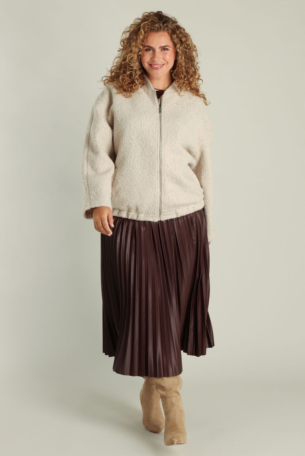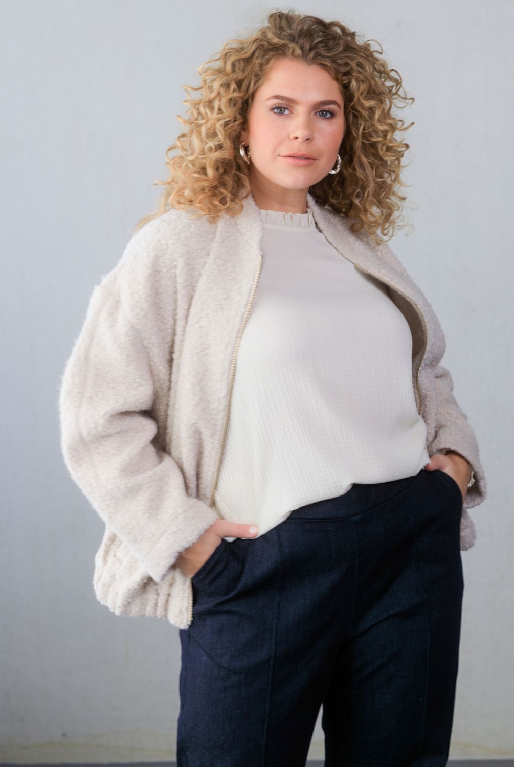 Dit jasje is uitgevoerd in een zachte teddylook van 100% polyester en heeft een comfortabele fit. Het model is volledig gevoerd en sluit met een rits. De ronde kraag en steekzakken maken het praktisch én stijlvol. Verkrijgbaar in sand en dark grey, ideaal voor het tussenseizoen.