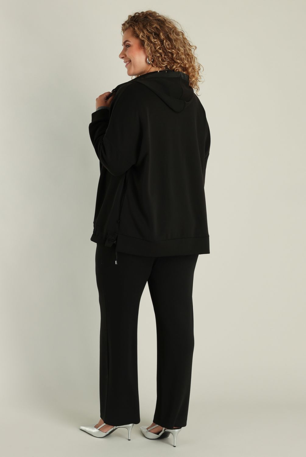 Dit vestje is gemaakt van een gladde modal mix die zacht en soepel aanvoelt. Het ontwerp heeft een capuchon, lange mouwen en een drawstring in de zoom waarmee je de pasvorm kunt aanpassen. Een sportief maar stijlvol stuk, verkrijgbaar in zwart en port, dat je makkelijk combineert. Leuk om te combineren met bijpassende broek Oirla essential (5818) .