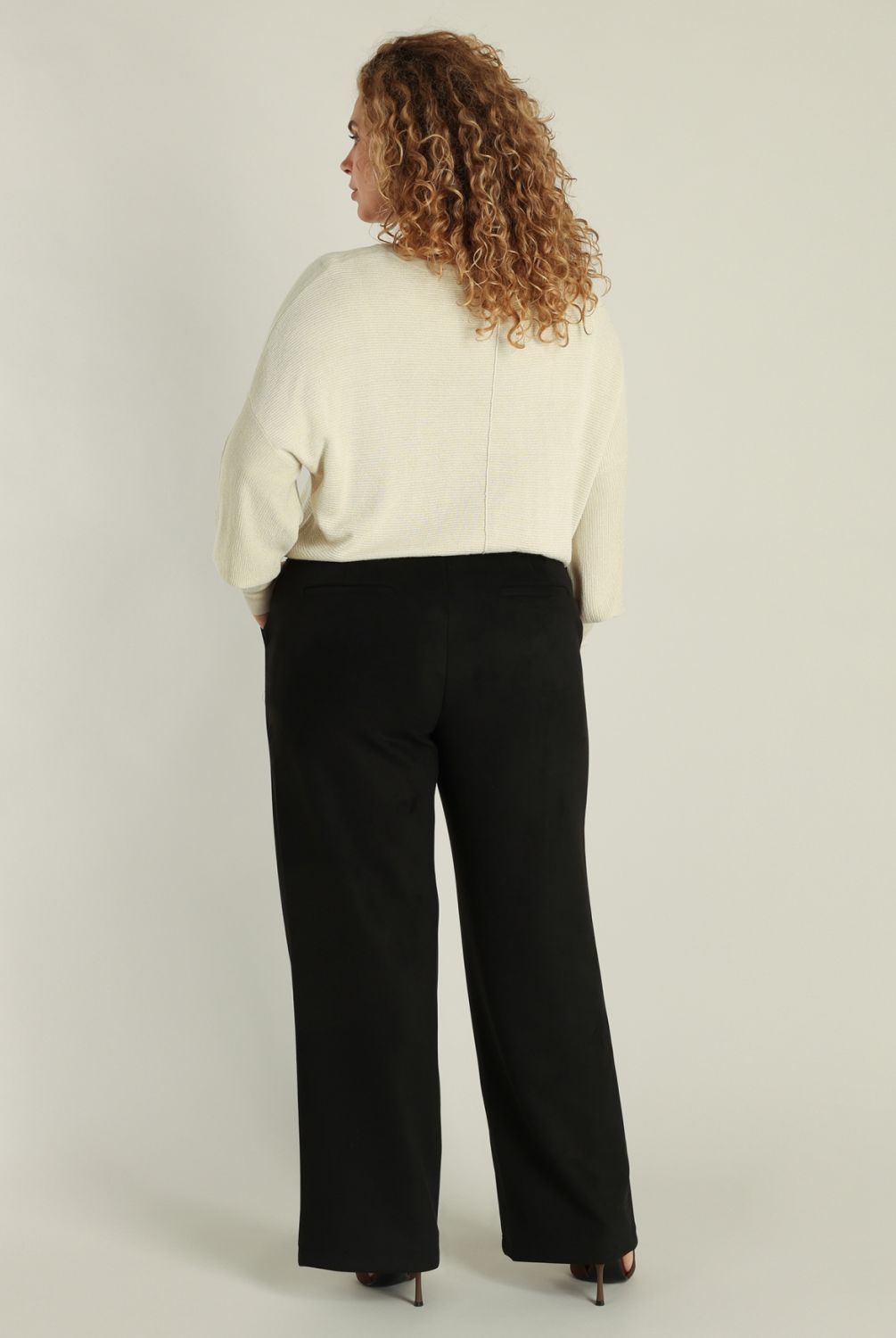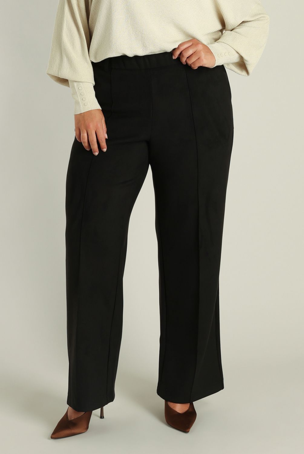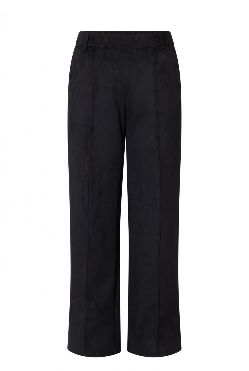 Een stijlvolle broek met een comfortabele twist. Deze wide fit is gemaakt van suedine in een matte tint. De dikkere kwaliteit voelt zacht maar stevig aan. Met elastische tailleband, steekzakken en een platte naad middenvoor is dit een veelzijdig item dat klasse en gemak combineert.