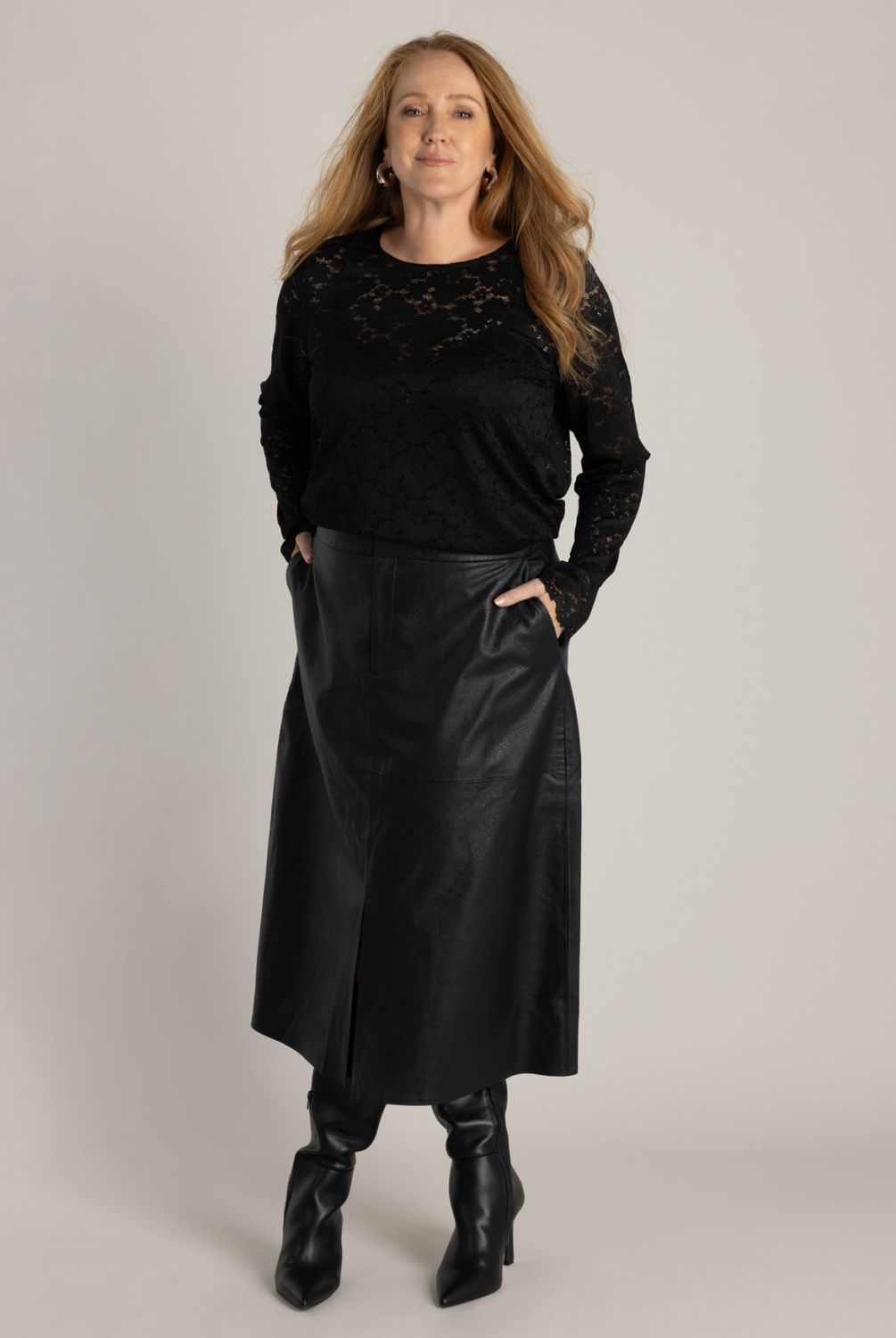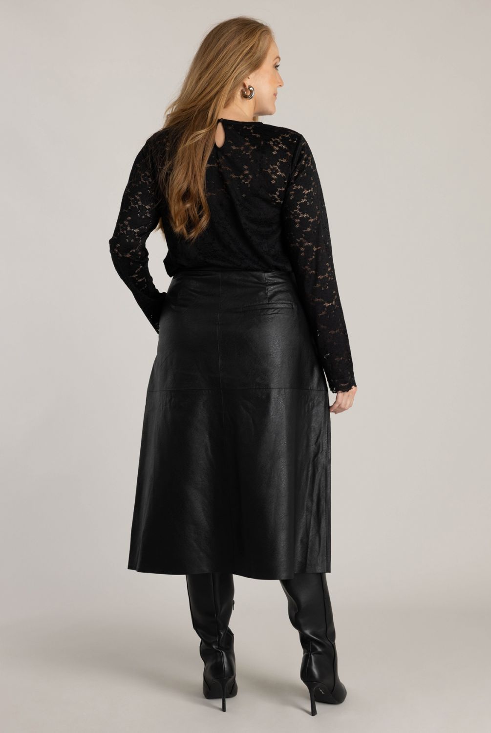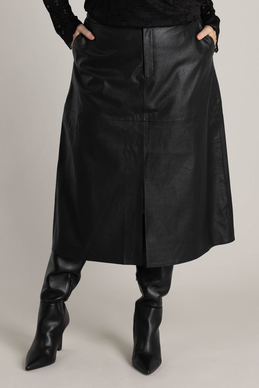 Deze kuitlange rok van Yest curve combineert de stoere uitstraling van PU met een vrouwelijke pasvorm. Het ontwerp heeft een voor-split en sluit met een rits achter. Verkrijgbaar in zwart en winter white – een rok die zowel casual als chic gestyled kan worden met laarzen of hakken.