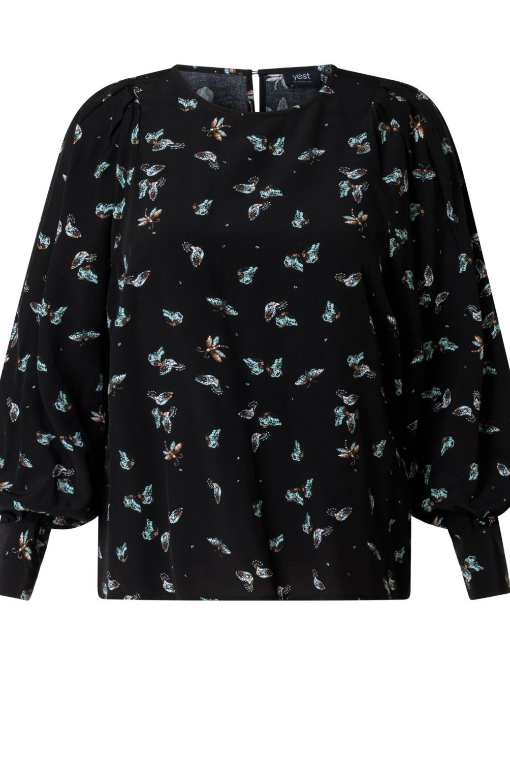 Deze luchtige blouse van Yest curve voelt zacht en soepel aan dankzij de viscosekwaliteit. De ballonmouwen en het kleine knoopje achter in de hals zorgen voor elegante details. Verkrijgbaar in twee speelse dessins.