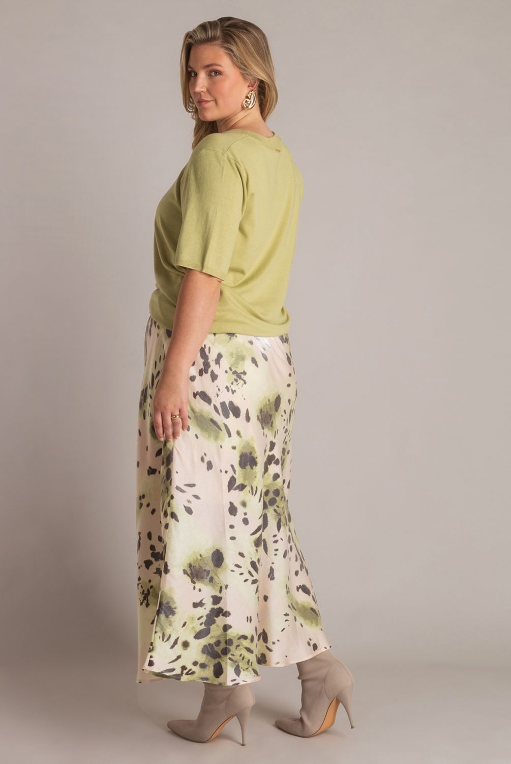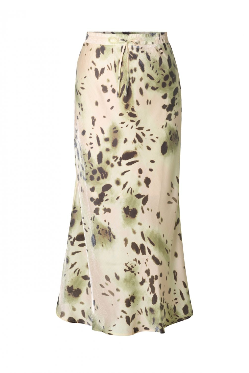 De Jacoba rok is gemaakt van een lichte viscosemix en heeft een subtiele A-lijn die soepel om het lichaam valt. De elastische tailleband met drawstring zorgt voor een verstelbare pasvorm. De allover print geeft de rok een speels en zacht kleurverloop.