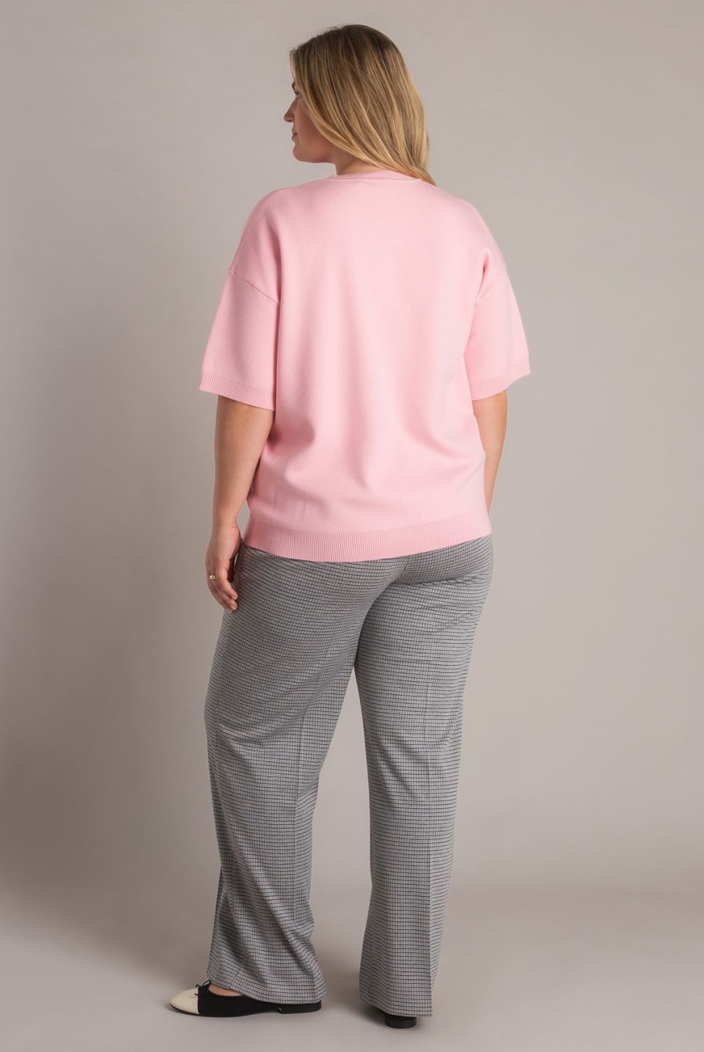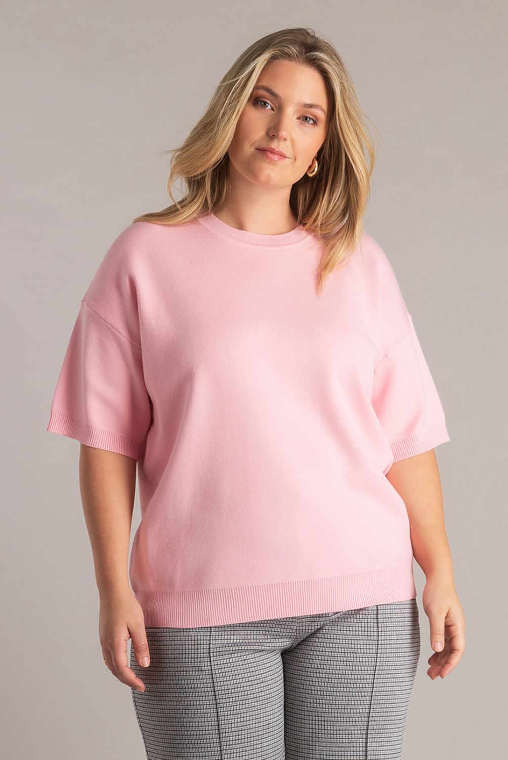 Deze gebreide top in een zachte pink kleur heeft een zachte, soepele structuur en een comfortabele fit die relaxed om het lichaam valt. De korte mouwen en ronde hals maken het een ideaal item voor het voor- en najaar. Een veelzijdige basic die eenvoudig te combineren is.