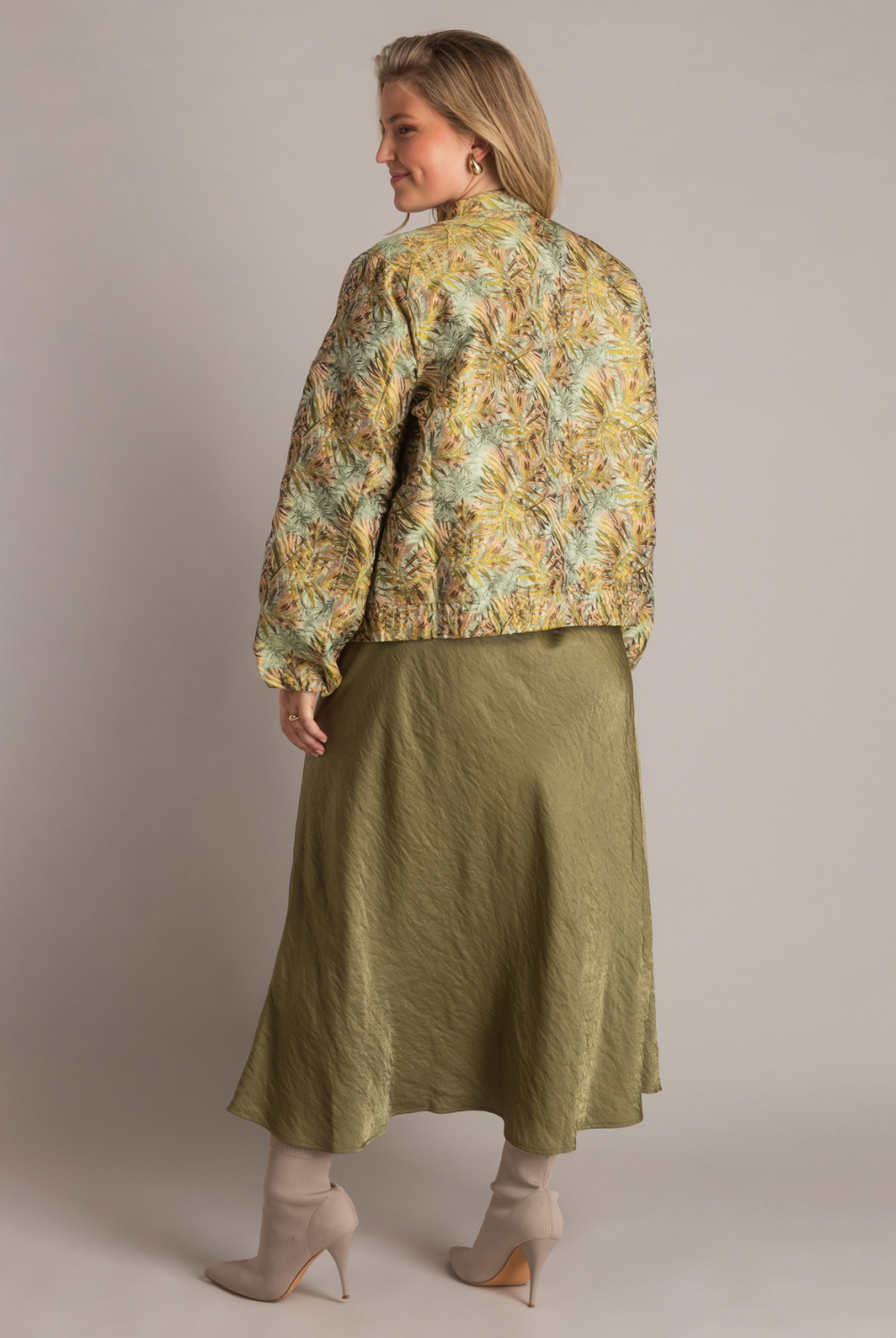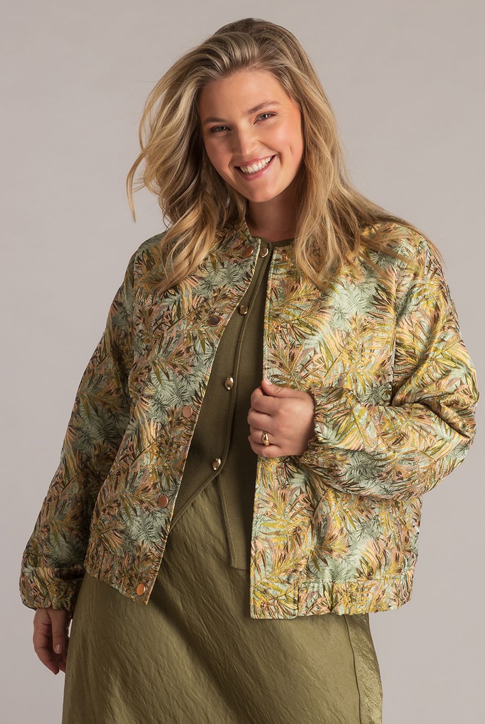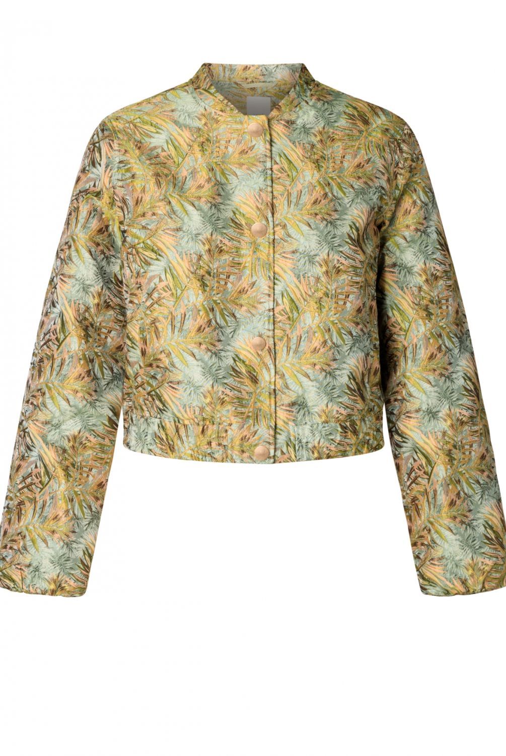 Het Jolien jasje uit de Spring collectie is uitgevoerd in een jacquardkwaliteit met een rijk patroon. Het korte bombermodel en de ronde halslijn geven het ontwerp een moderne uitstraling. Licht, vrolijk en superstijlvol—dit is zo’n piece waarmee je elke outfit in één keer opfleurt.