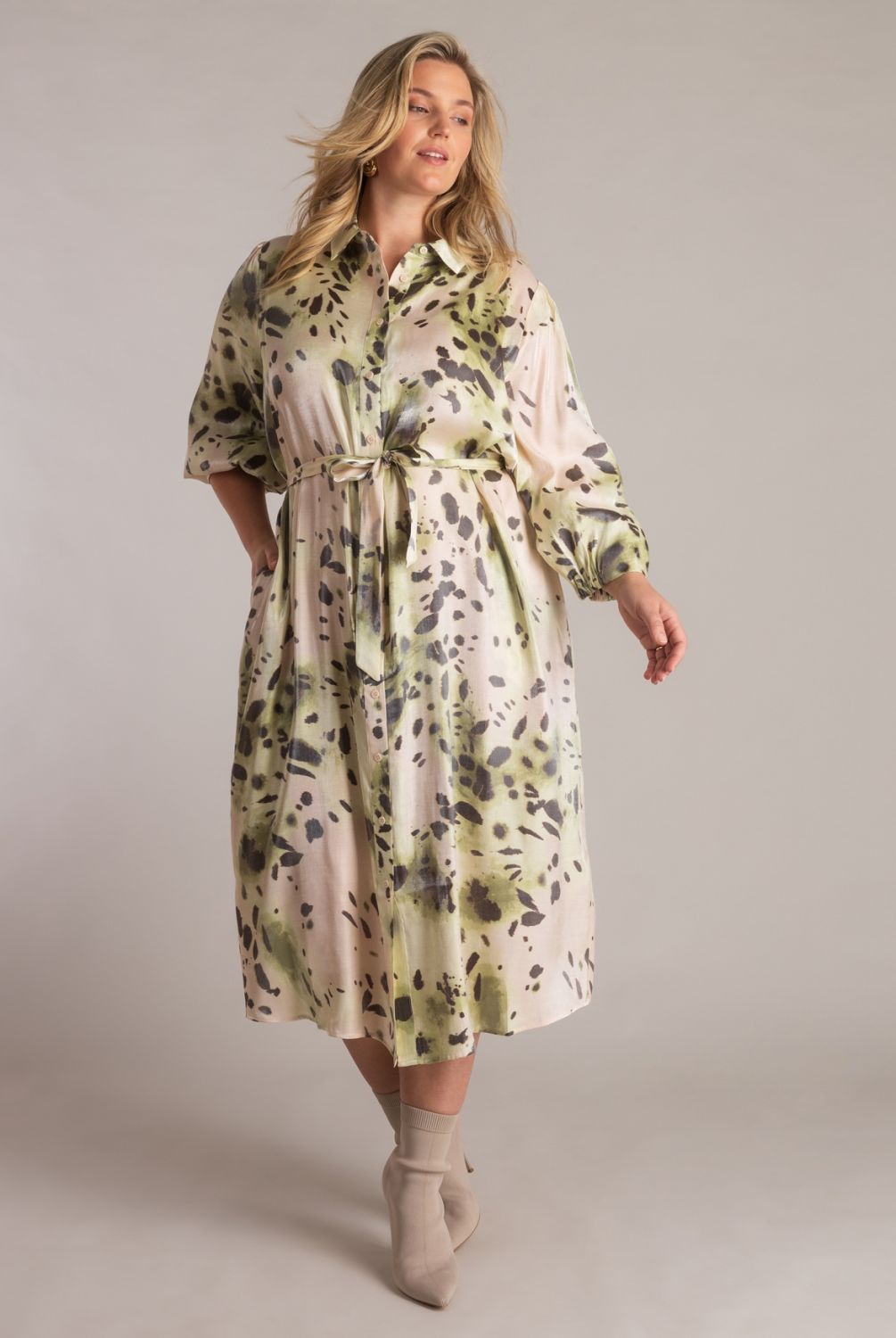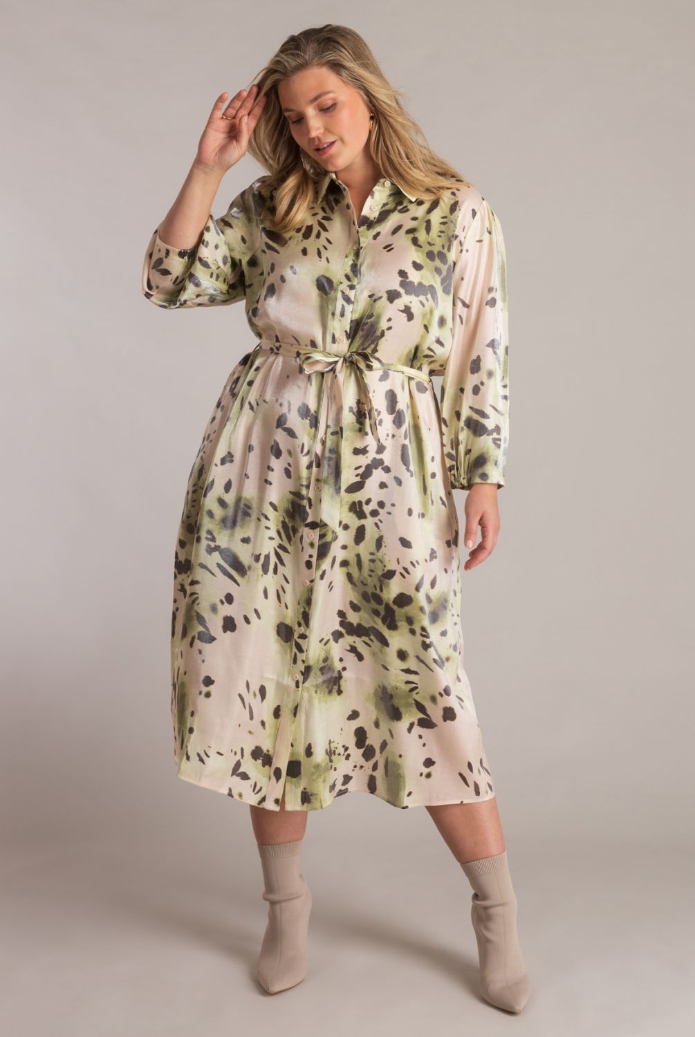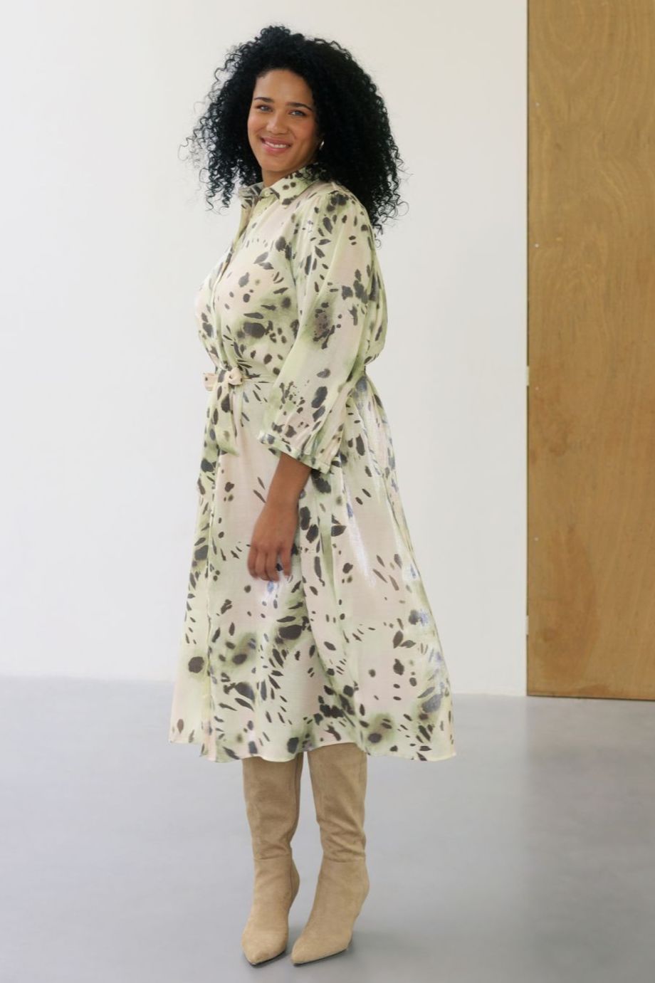 Deze jurk heeft alles: glans, flow en een print die meteen opvalt. De stof voelt heerlijk soepel, de 3/4-mouwen geven een luchtig effect en met de ceintuur creëer je zo een mooie taille. Een echte showstopper die je met één beweging lente-proof maakt.