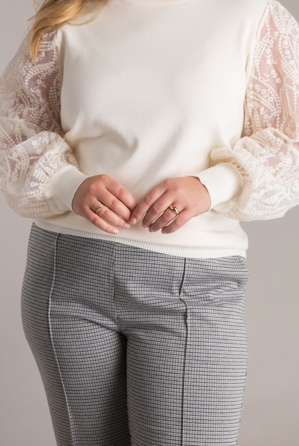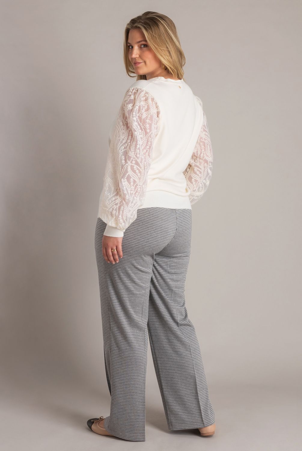 Deze trui is echt een beauty! Het zachte lijfje zit heerlijk, maar de mesh mouwen met bloemenpatroon stelen de show. In antique white oogt hij superfris en vrouwelijk. Perfect voor dagen waarop je comfy wilt zijn, maar tóch iets bijzonders wilt dragen.