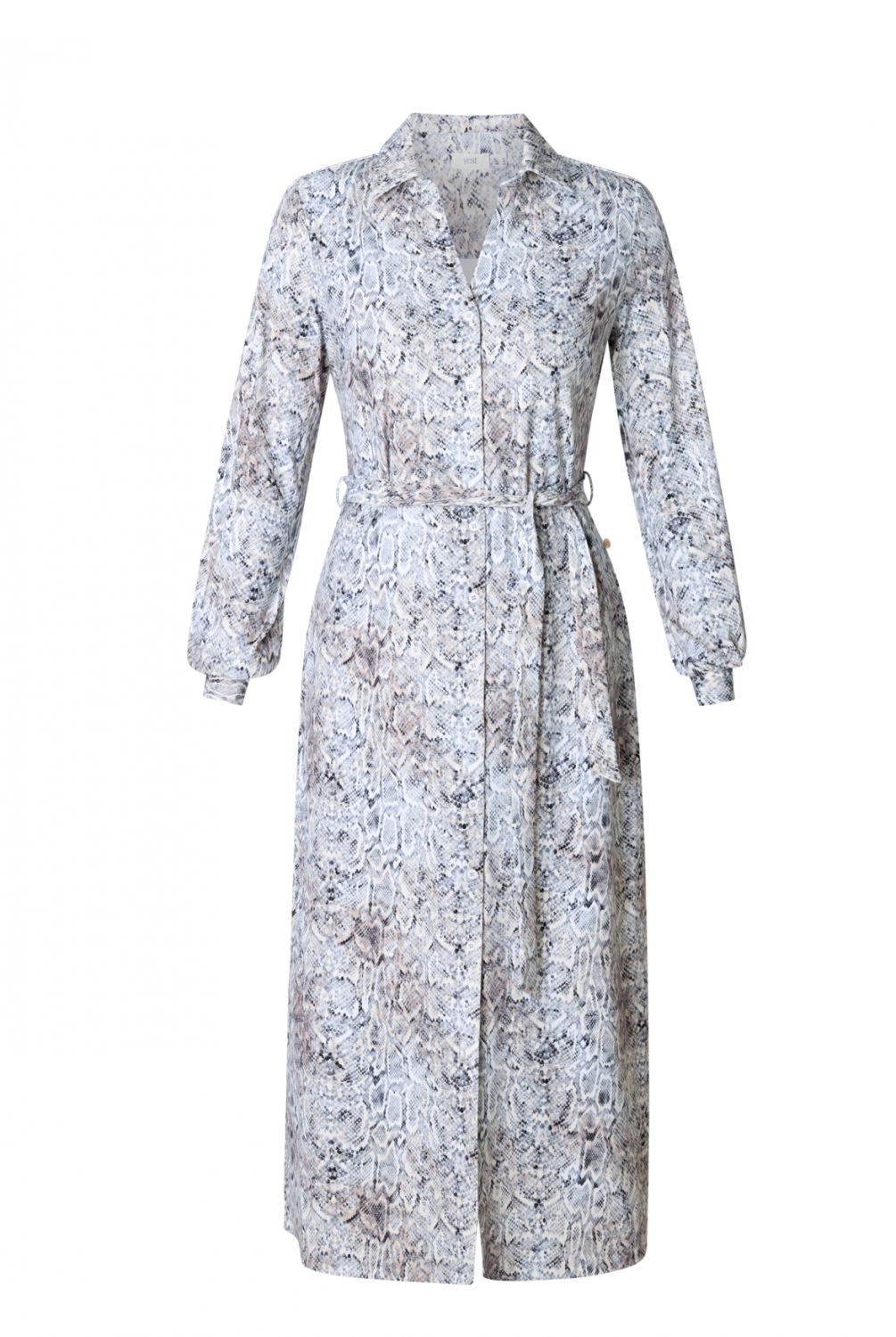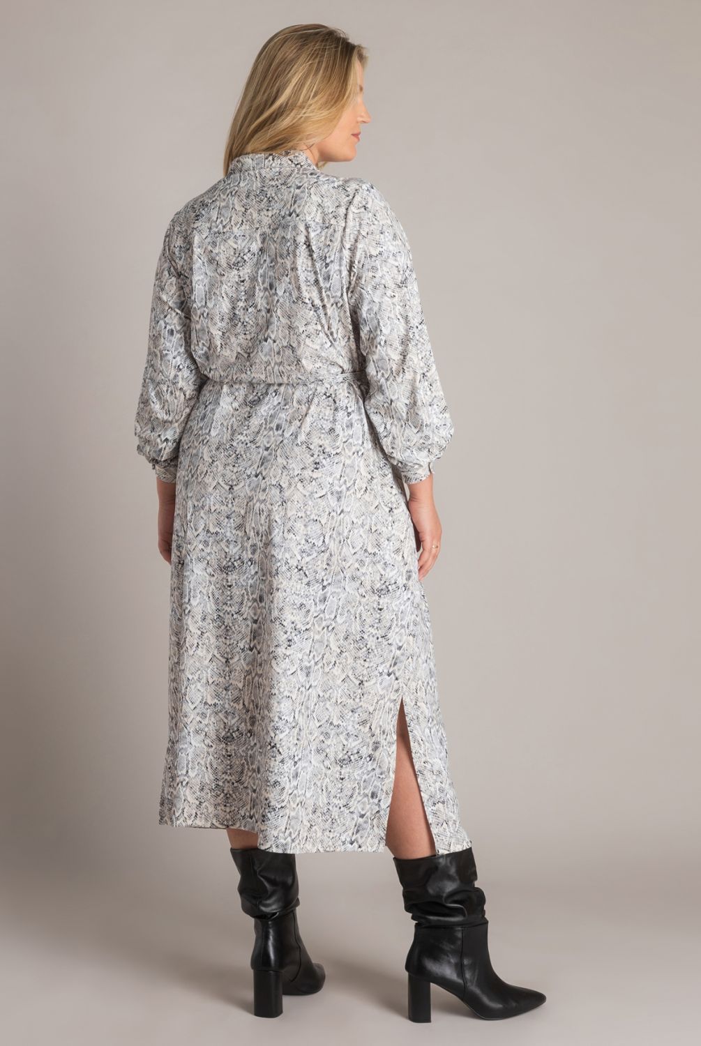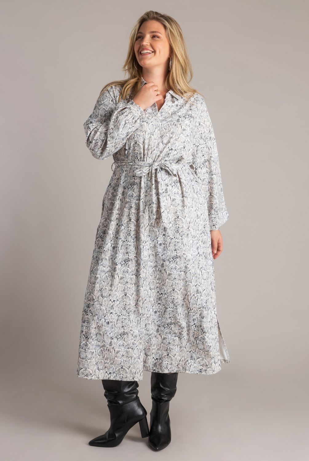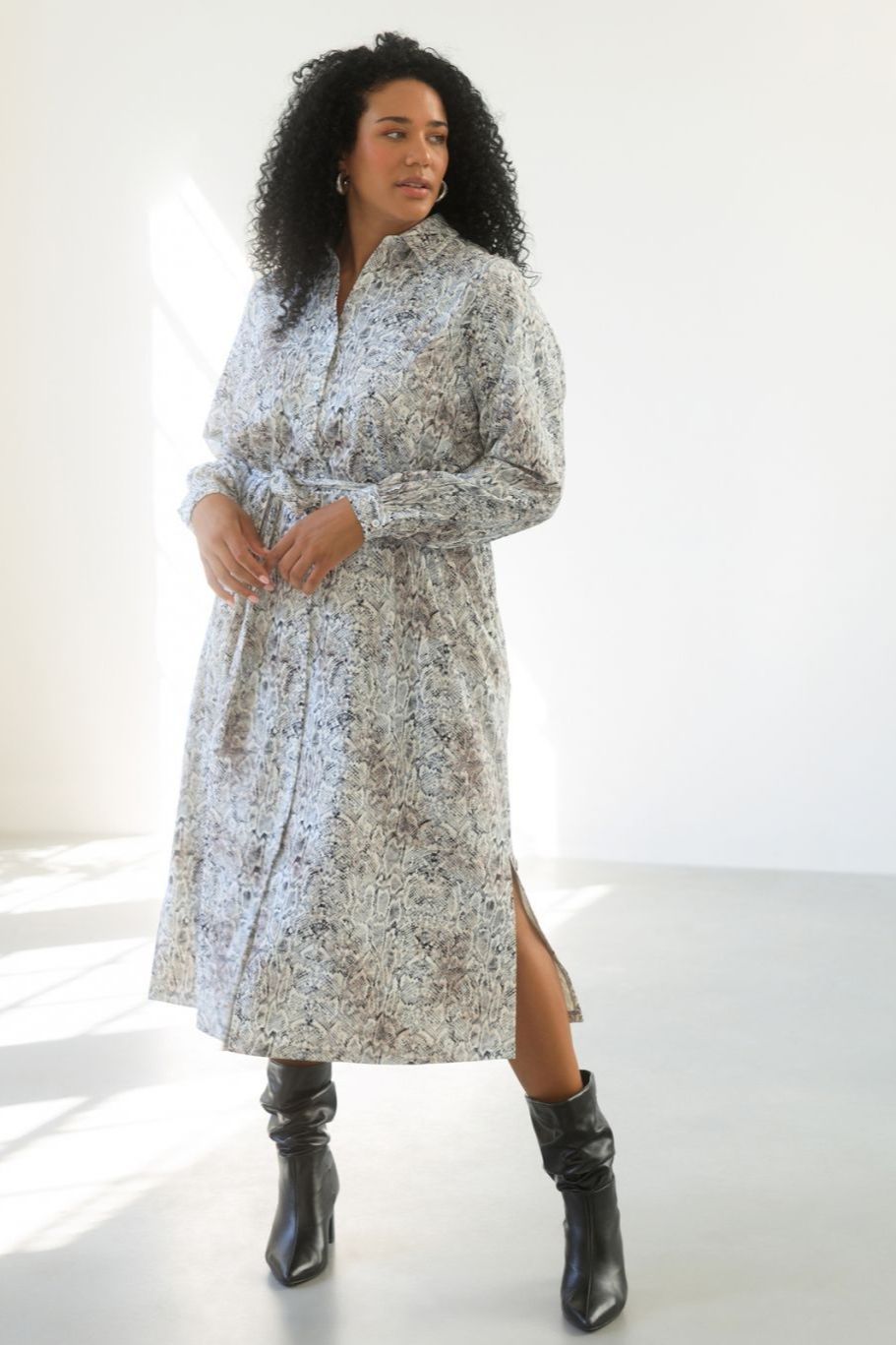Deze jurk is terug—en eerlijk, de nieuwe print maakt ’m nóg leuker. De travelstof draagt heerlijk licht en blijft de hele dag mooi. Met de doorknoopsluiting, kraag en ceintuur kun je je look precies vormen zoals jij wilt. De zijsplitten geven ’m net dat soepele, swingende effect. Perfect voor elke dag!