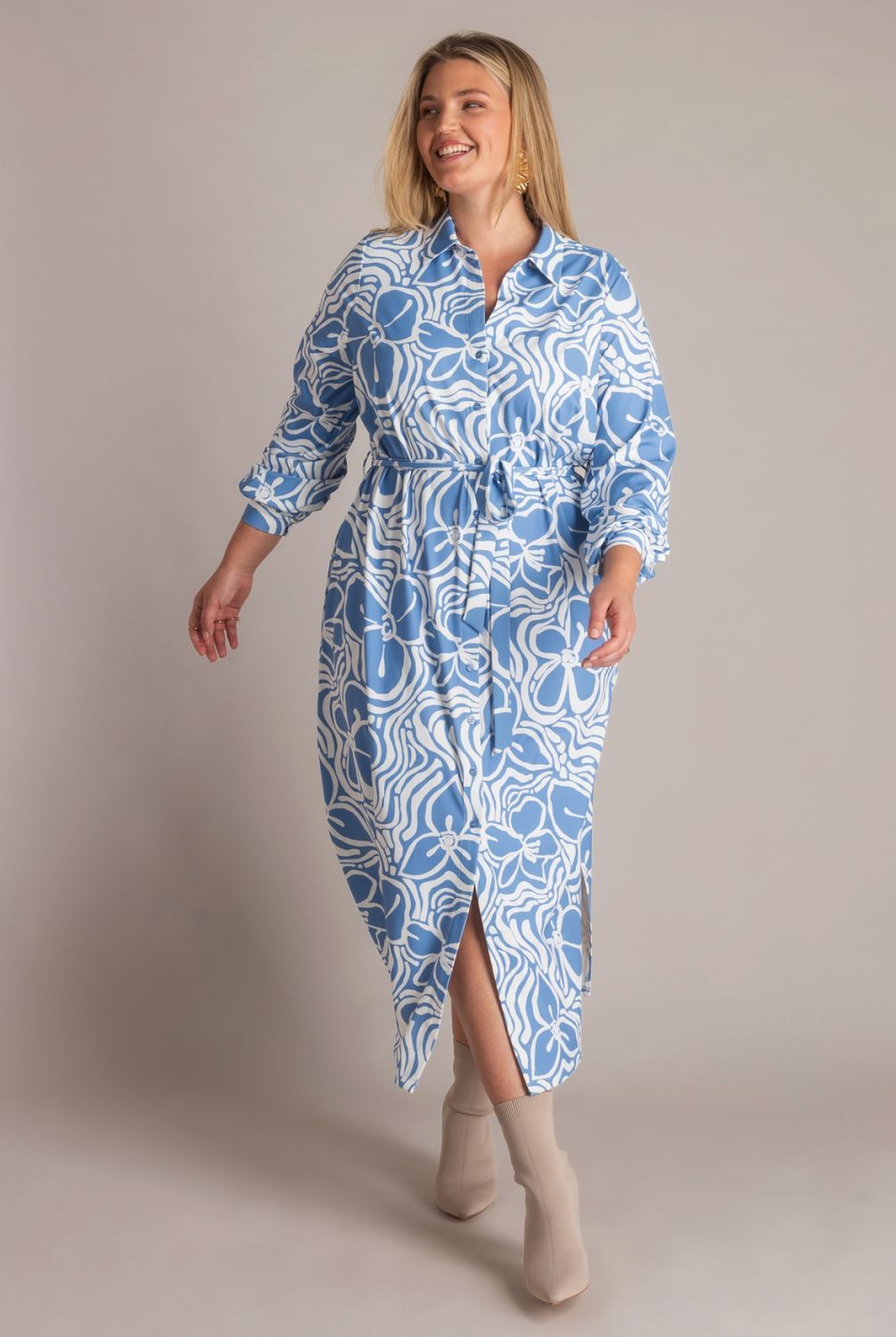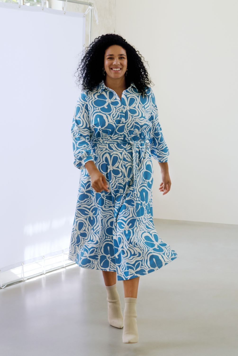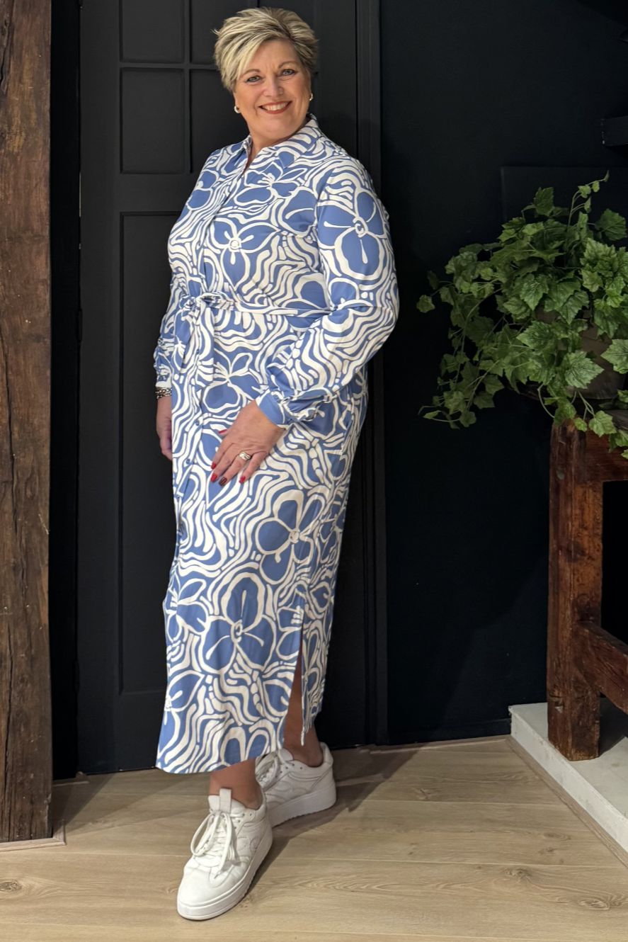 De travelstof van deze jurk zorgt voor een lichte stretch en een gladde, onderhoudsvriendelijke kwaliteit. De volledige knoopsluiting en lange mouwen geven een verzorgd silhouet. Met twee kleurkeuzes is dit een veelzijdig item dat geschikt is voor zowel casual als zakelijke momenten.