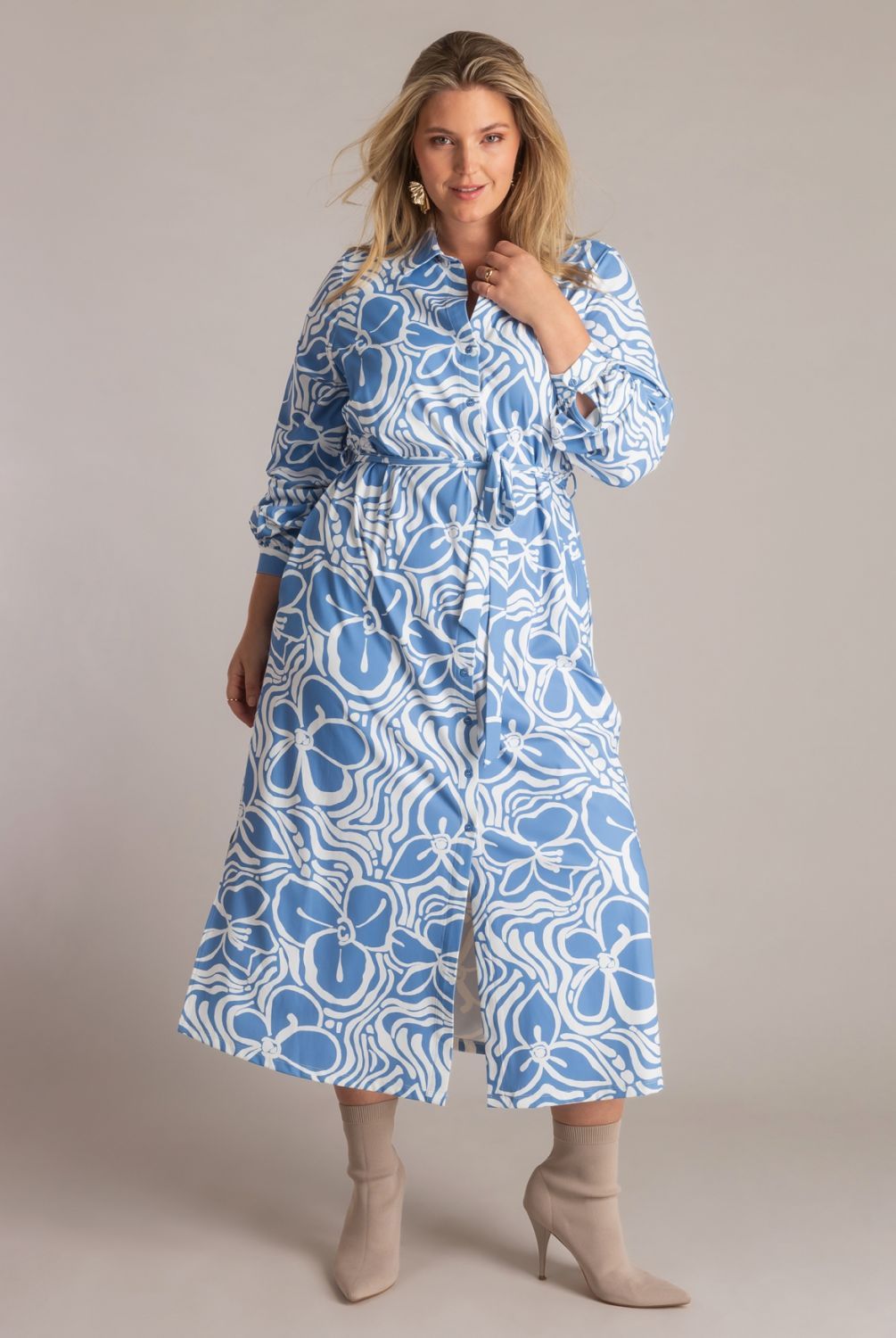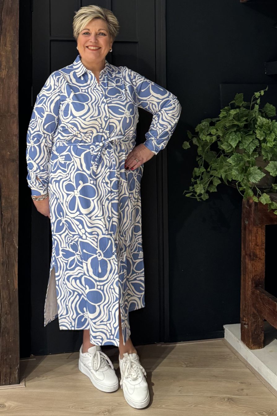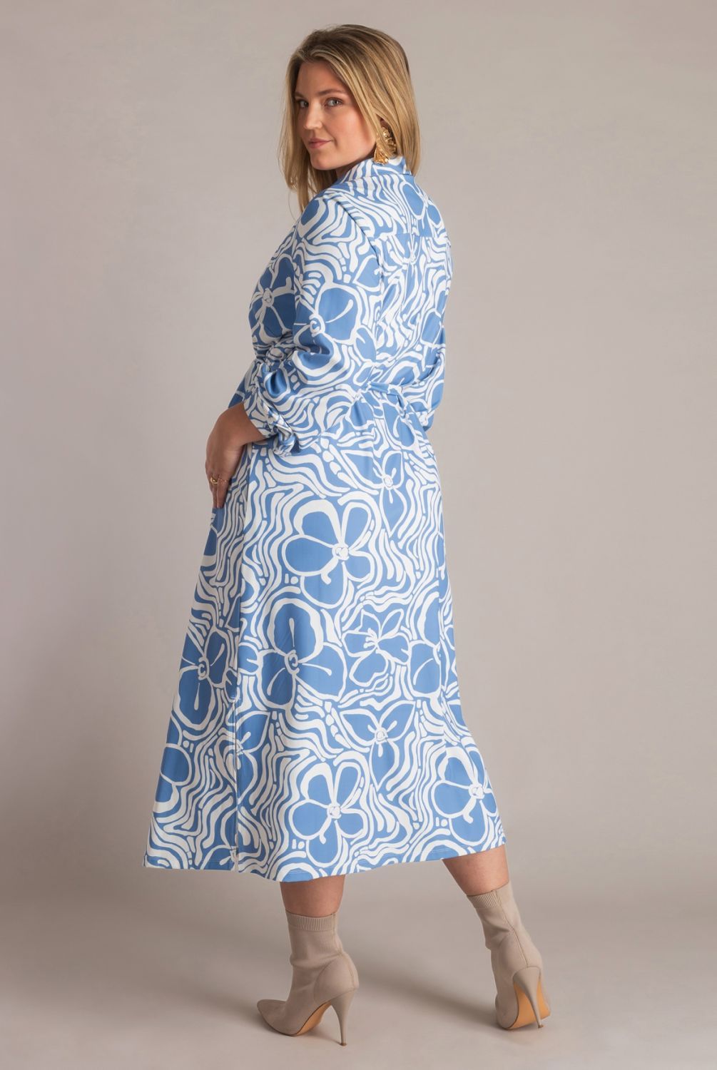 De travelstof van deze jurk zorgt voor een lichte stretch en een gladde, onderhoudsvriendelijke kwaliteit. De volledige knoopsluiting en lange mouwen geven een verzorgd silhouet. Met twee kleurkeuzes is dit een veelzijdig item dat geschikt is voor zowel casual als zakelijke momenten.