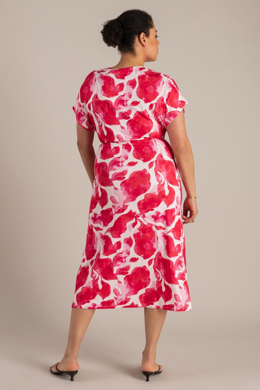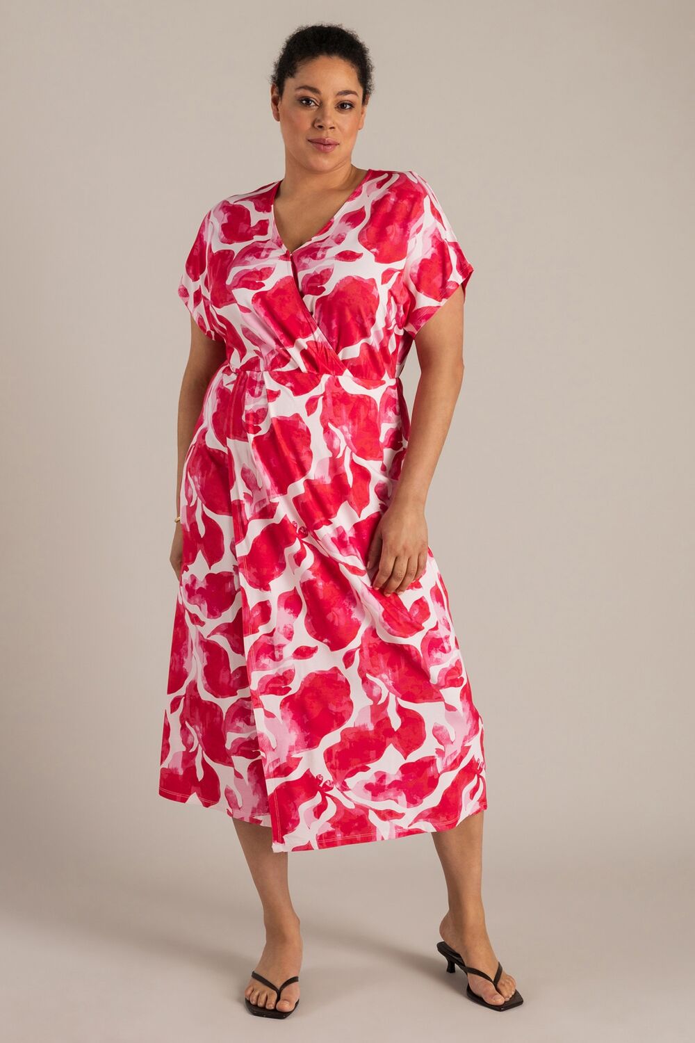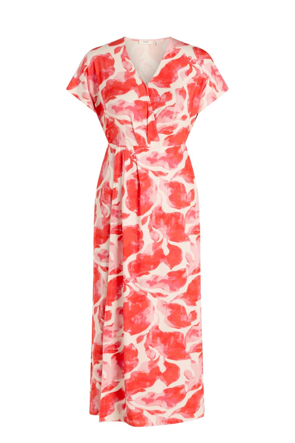 Een jurk die meteen opvalt door de print en fijne pasvorm. De soepele jersey valt mooi langs het lichaam en beweegt met je mee. De overslag zorgt voor een vrouwelijk silhouet, terwijl de lengte tot halverwege de kuit zorgt voor een elegante, zomerse look.