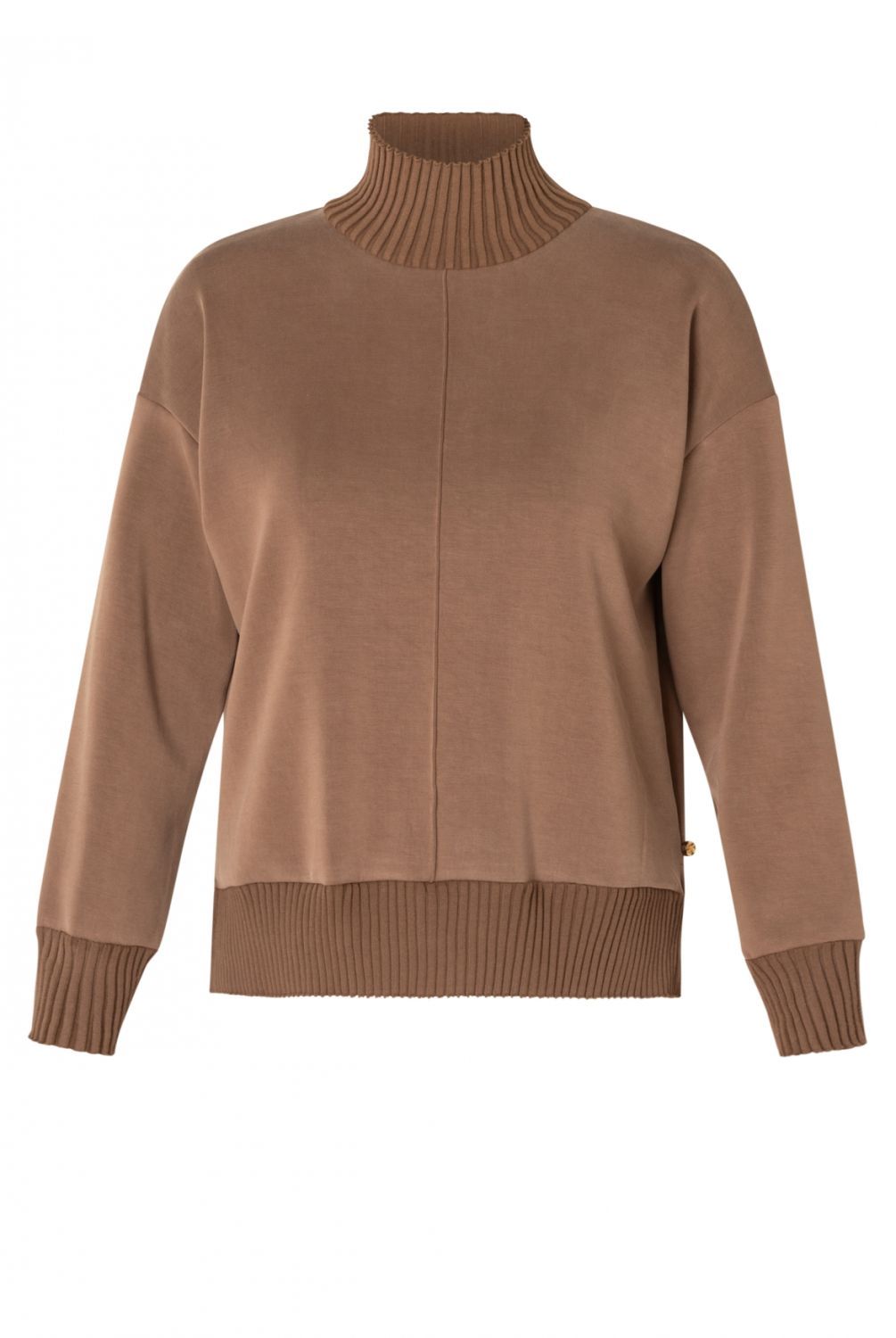 Deze sweater is gemaakt van een gladde modalmix die zacht en soepel aanvoelt. Het comfort fit model valt losjes en heeft een hoge geribde kraag, manchetten en zoom voor een sportieve touch. Verkrijgbaar in sand en warm taupe, twee neutrale tinten die je moeiteloos combineert.