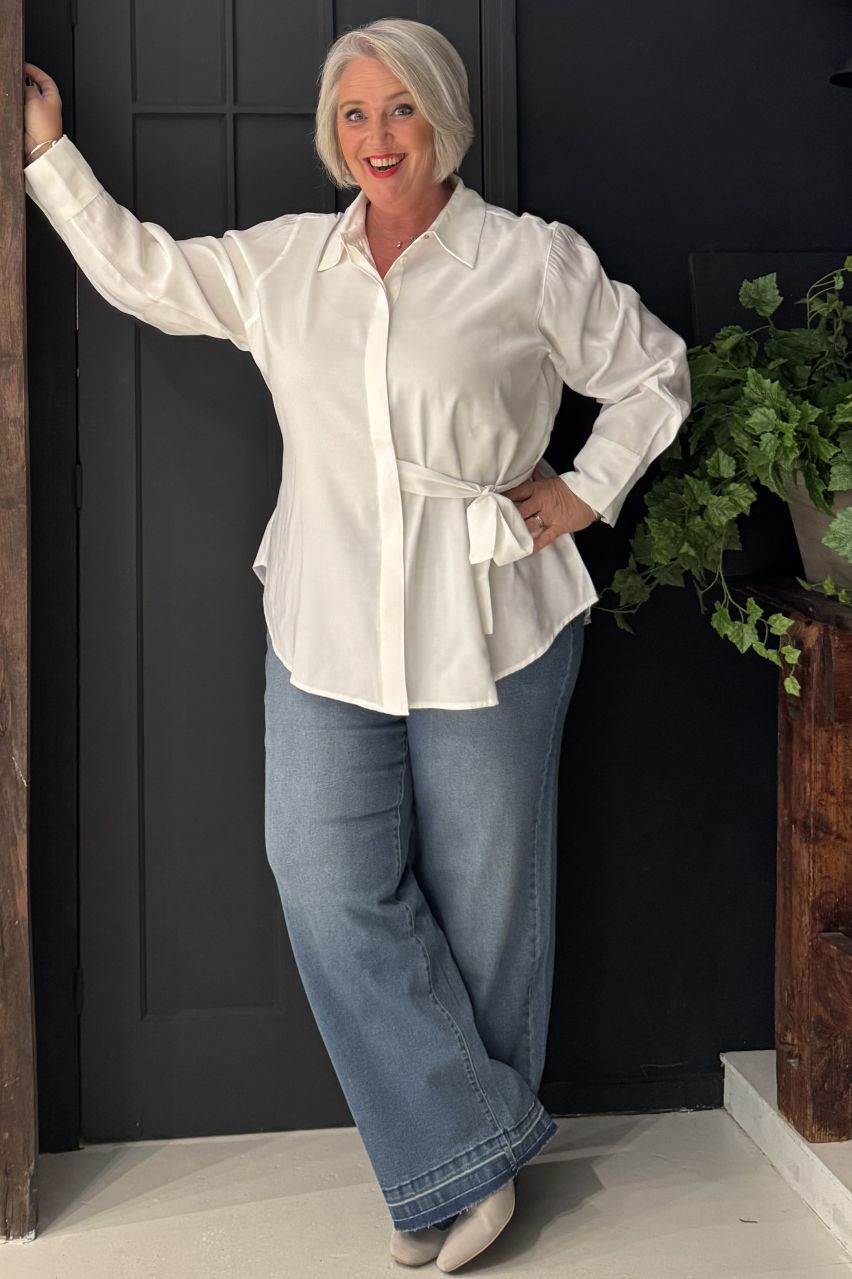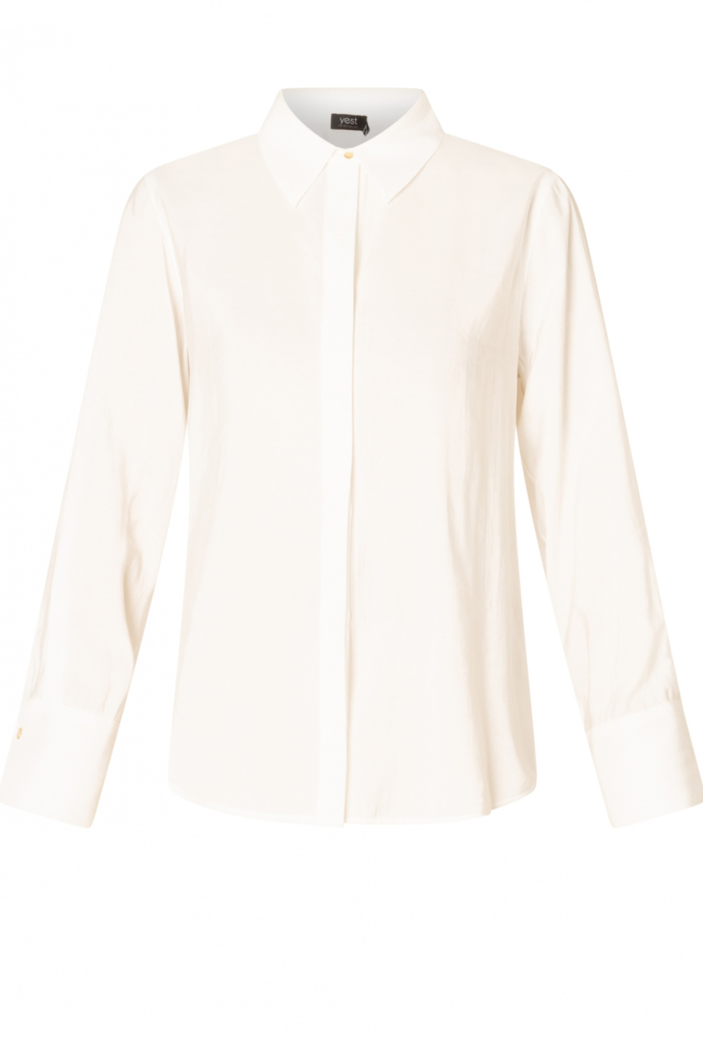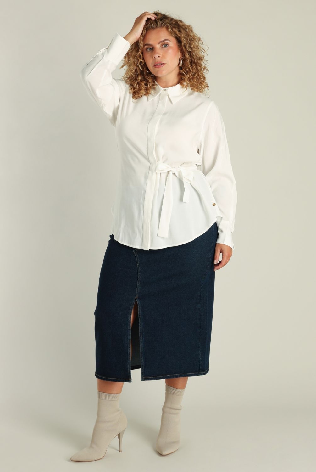 Deze blouse combineert eenvoud met subtiele details. De soepele viscosemix voelt prettig aan en heeft een matte uitstraling. Het model valt recht en heeft een strikceintuur met twee losse lussen die je naar wens kunt bevestigen of weglaten.