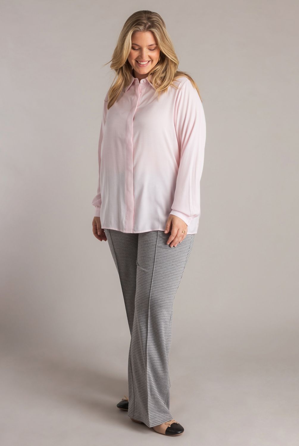 Deze Judit blouse combineert een zachte stofkwaliteit met een nette blinde knoopsluiting. De regular fit valt comfortabel en maakt de blouse geschikt voor zowel werk als vrije tijd. Dankzij de drie beschikbare kleuren is dit een veelzijdig item dat gemakkelijk te stylen is.